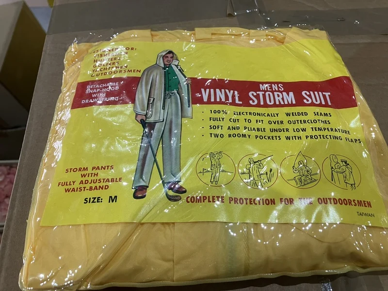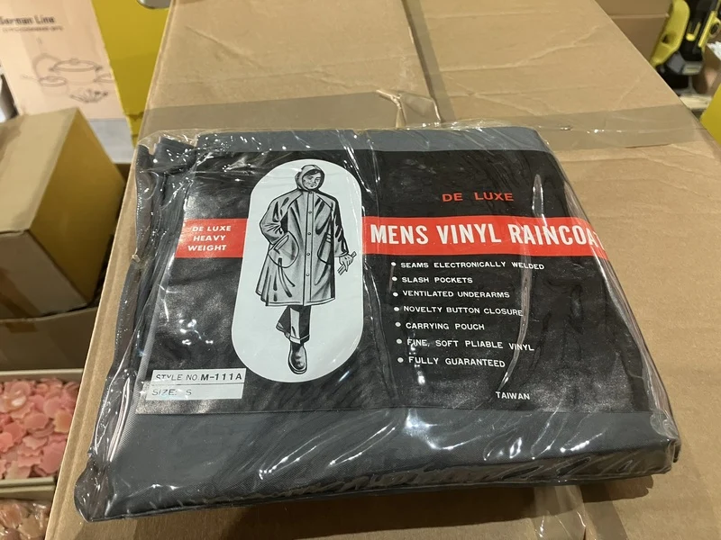 Product: Regenkleding Materiaal: Vinyl Conditie: nieuw Specificaties: regenjassen en sets (broek en jas)