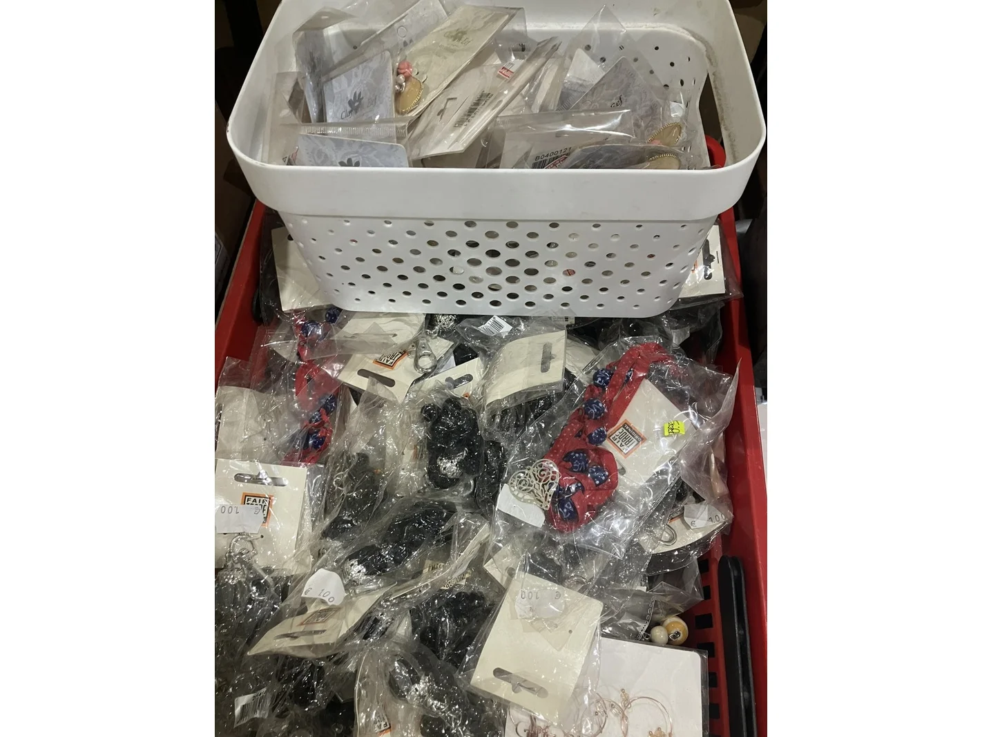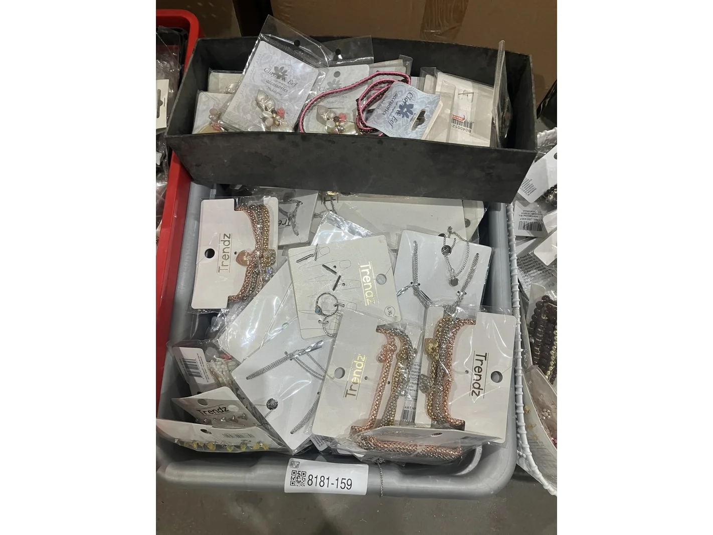 Product: Partij sieraden Conditie: nieuw Specificaties: 3 bakken en 2 kleine mandjes, oa Armbanden en oorbellen