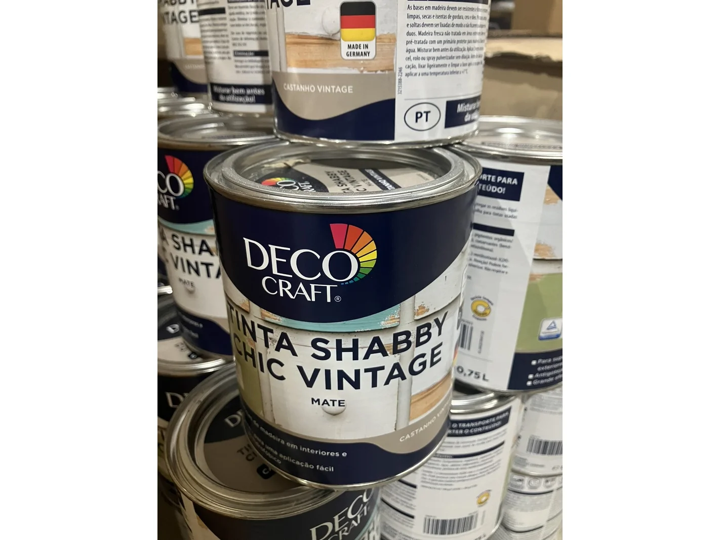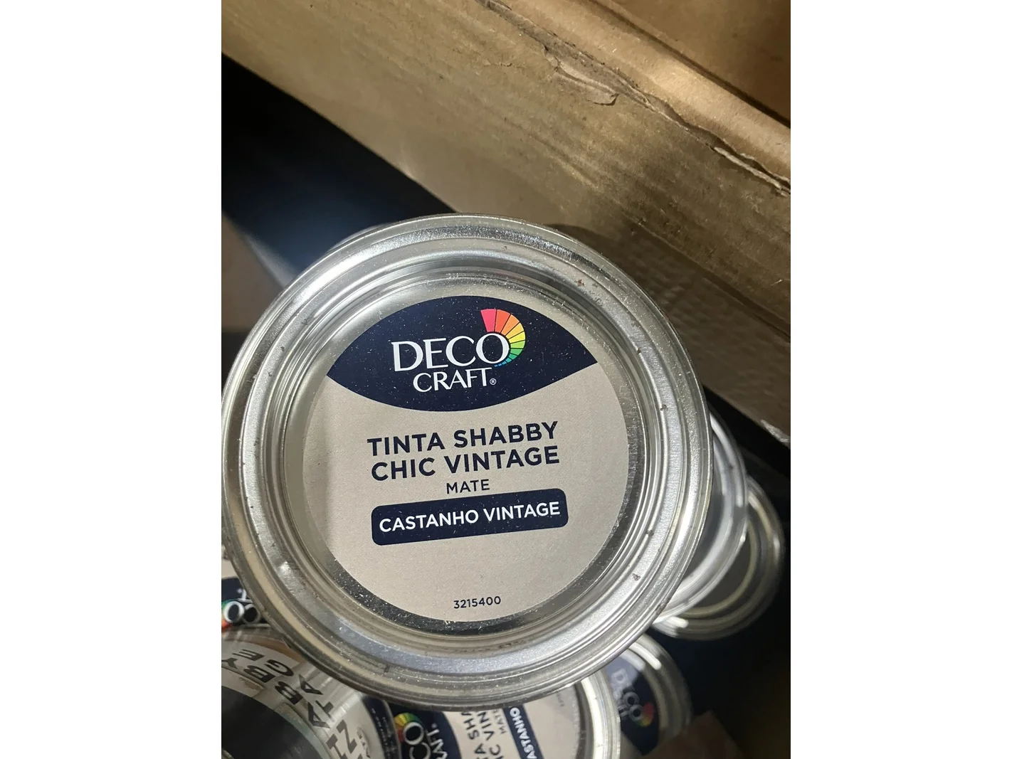 Merk: DecoCraft Product: Blikken tinta shabby chic vintage lak Kleur: castanho vintage Afmeting: 750 ml Conditie: nieuw Specificaties: Voor binnen en buiten, waterverdunbaar, rendement ca 11m2