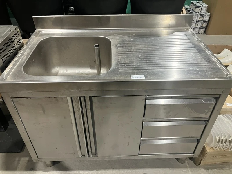 Product: RVS spoelkast met laden Afmeting: 120x69x86 cm Conditie: gebruikt