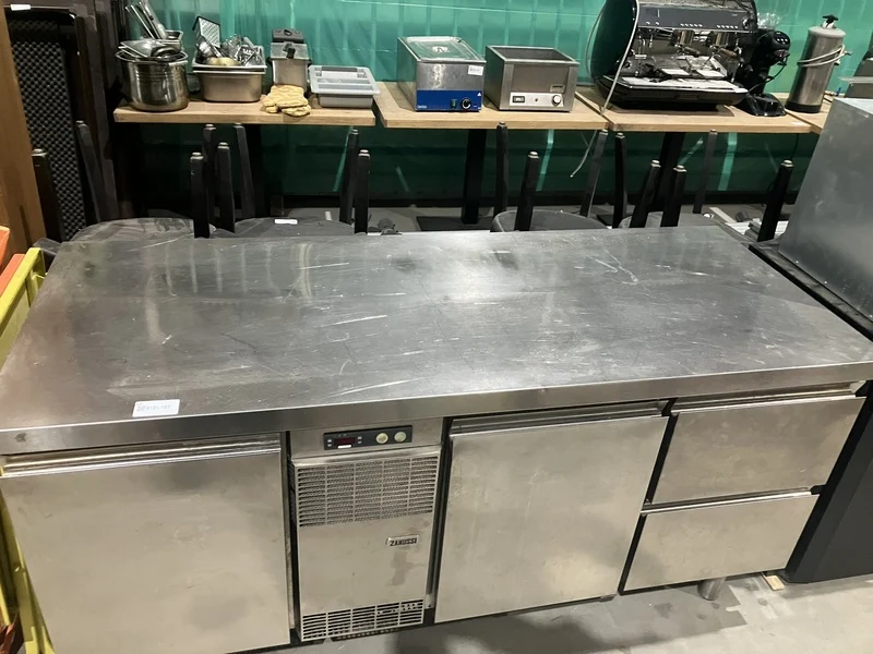 Merk: Zanussi Product: Horeca koelwerkbank Afmeting: 176x89x70 cm Conditie: gebruikt