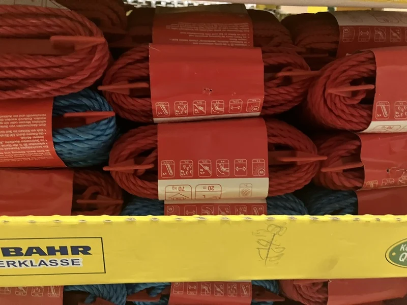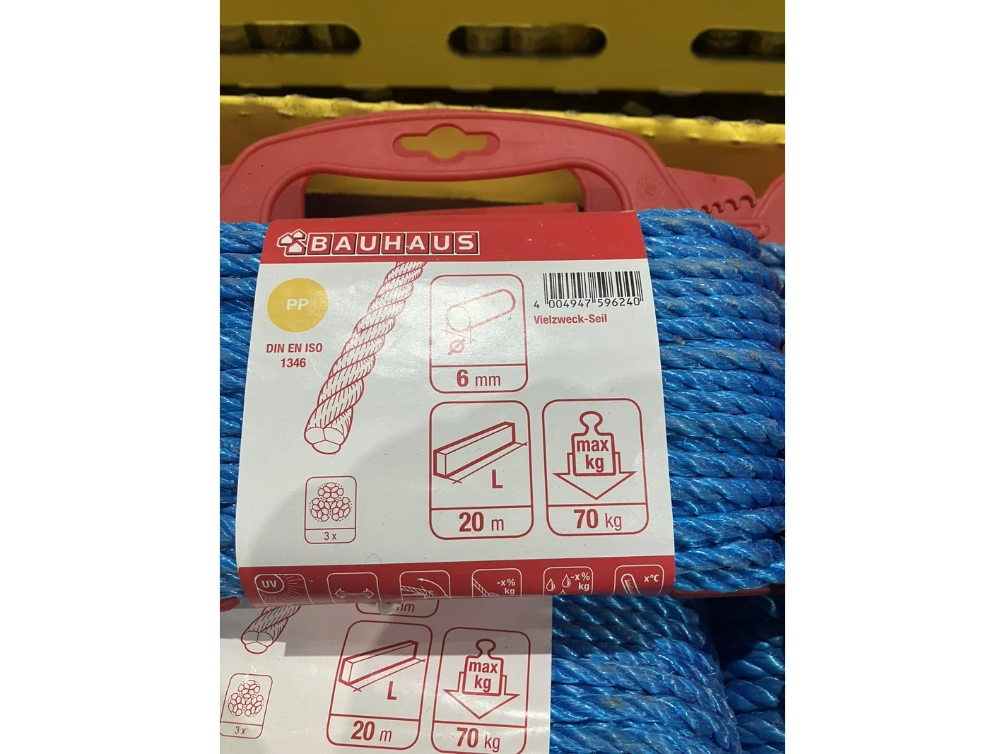 Merk: Bauhaus Product: Bundels touw Kleur: Blauw/Rood Conditie: nieuw Specificaties: bundels van 10 en 20 meter