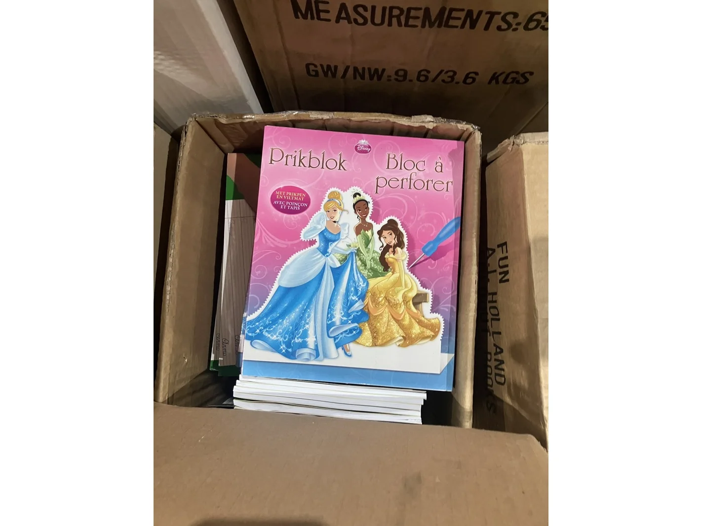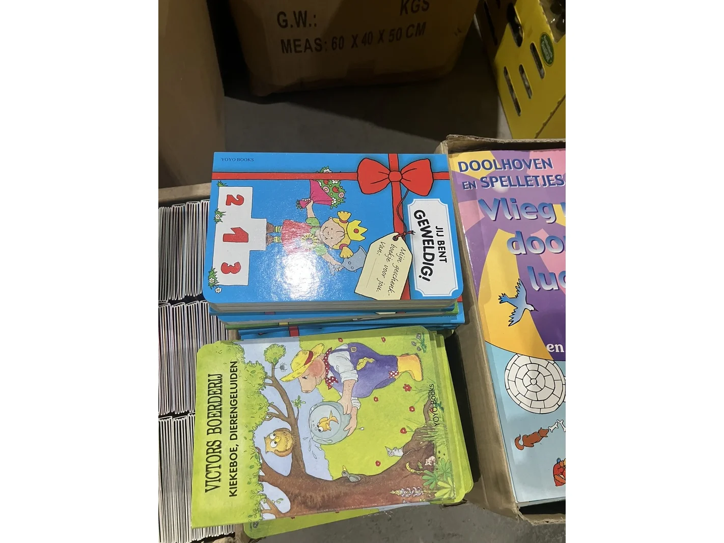 Product: Partij kinderboekjes Conditie: nieuw Specificaties: 11 dozen, o.a. leesboekjes, puzzelboekjes en oefening boekjes