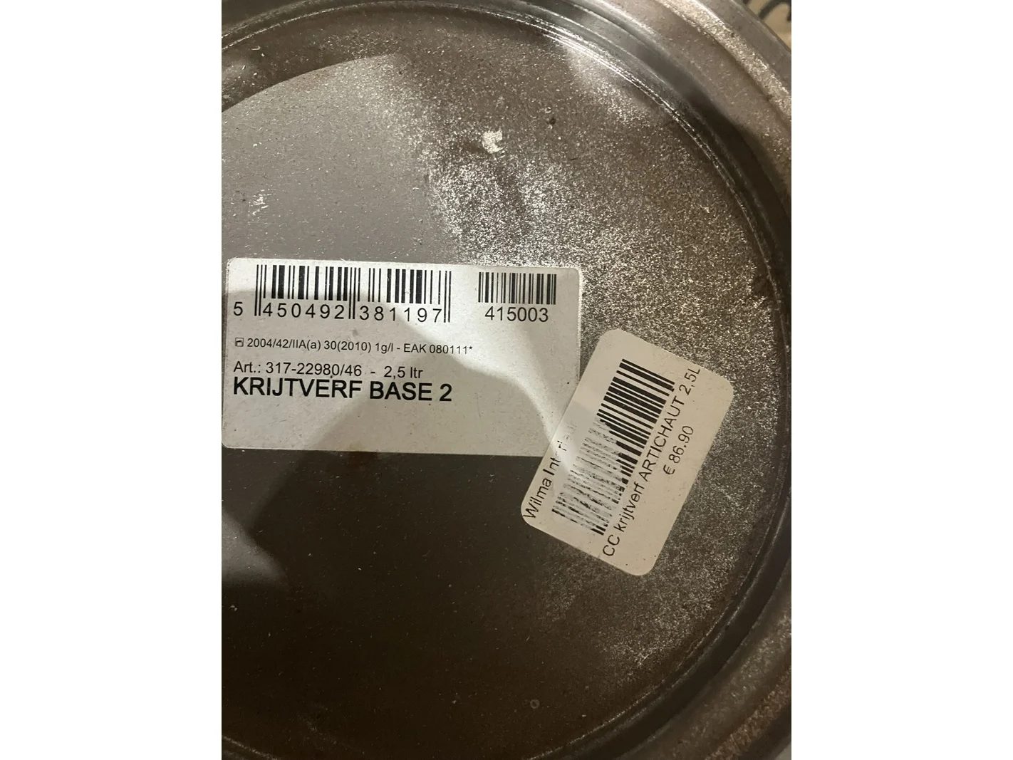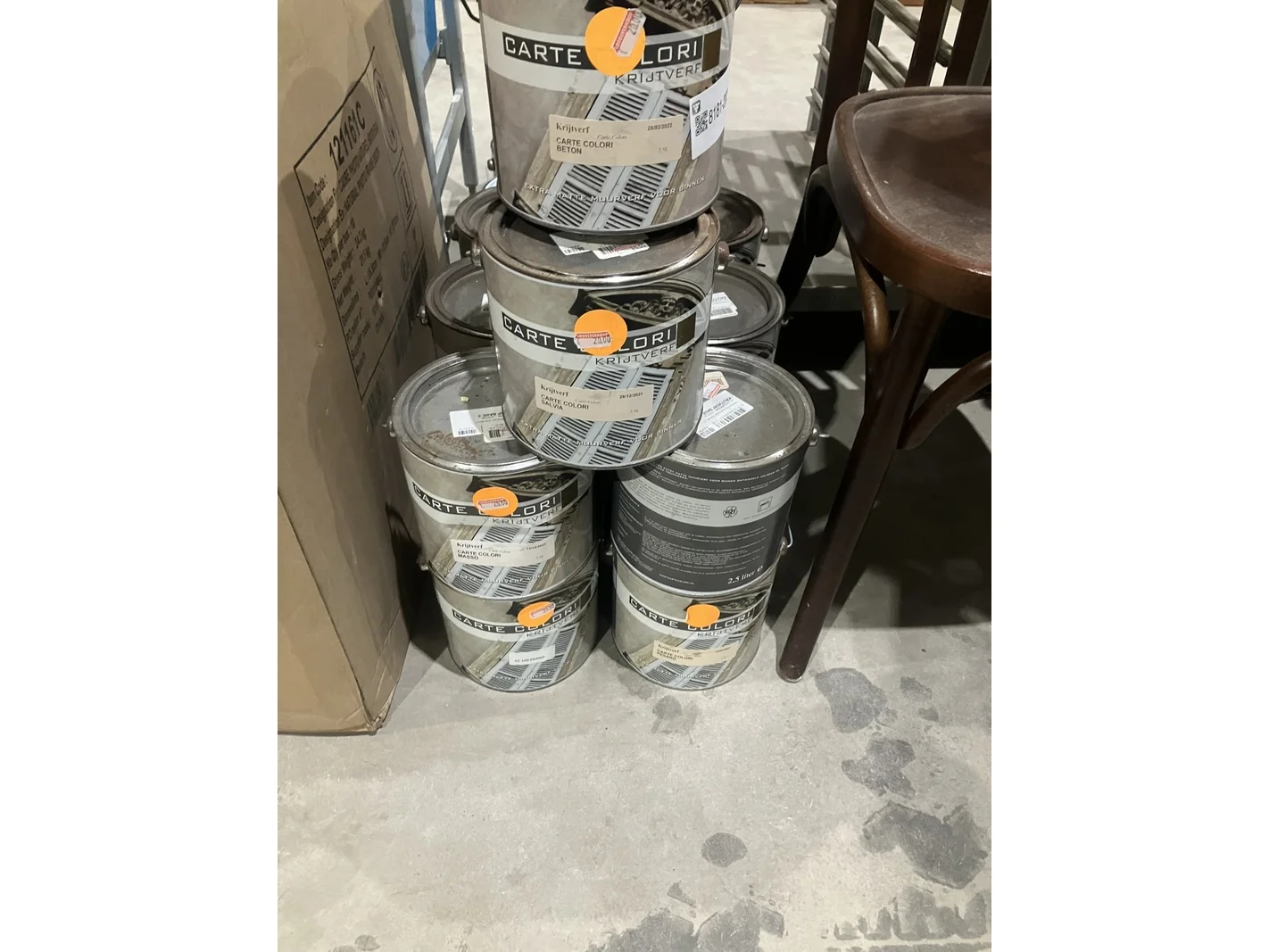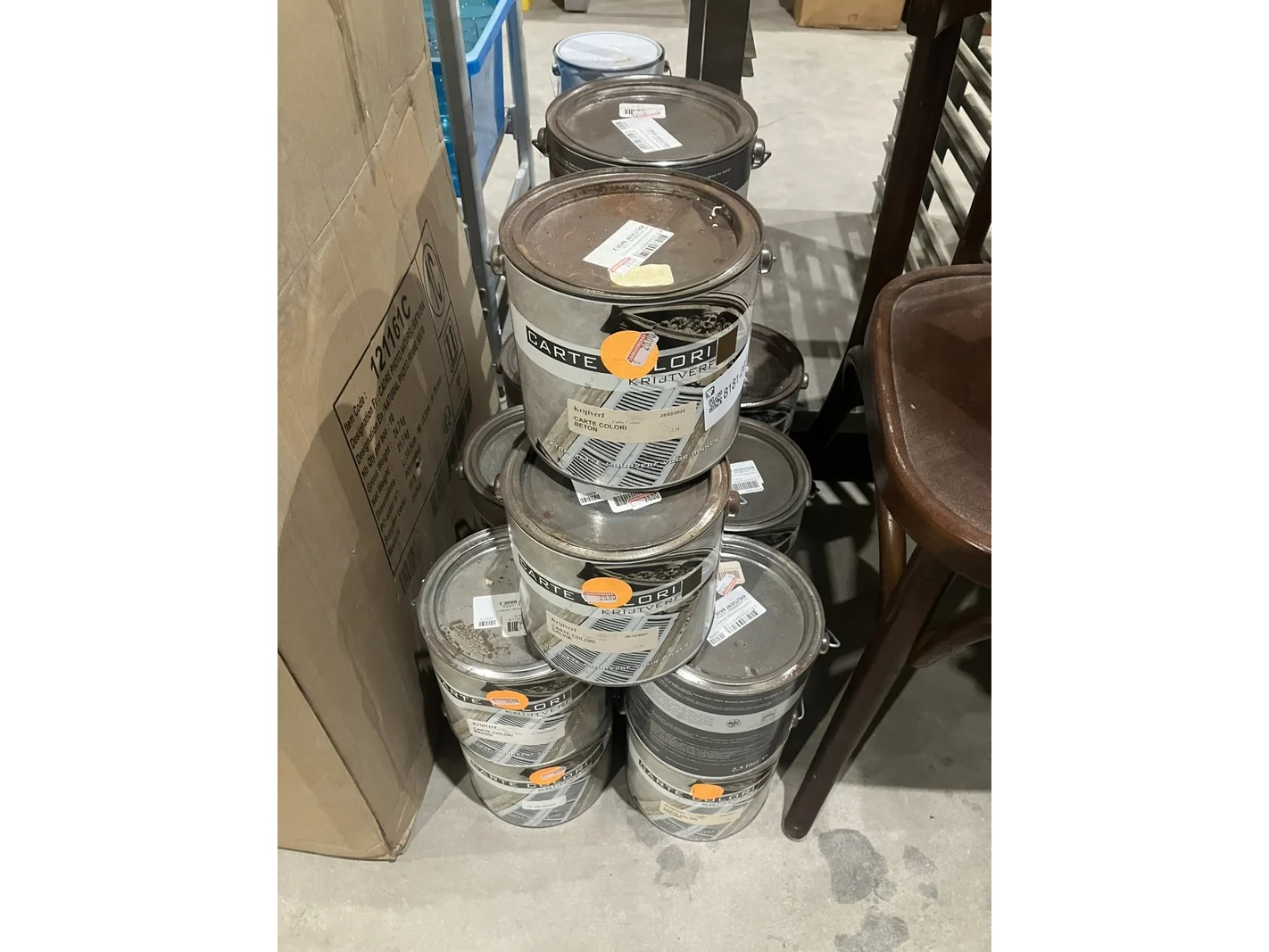 Ca. 17x blikken muurkkrijtverf, carte colori, beton