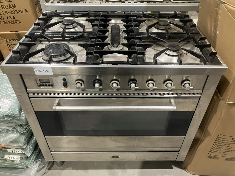 Merk: Boretti Product: 5 pits gasfornuis Afmeting: 90x60x92 cm Conditie: gebruikt