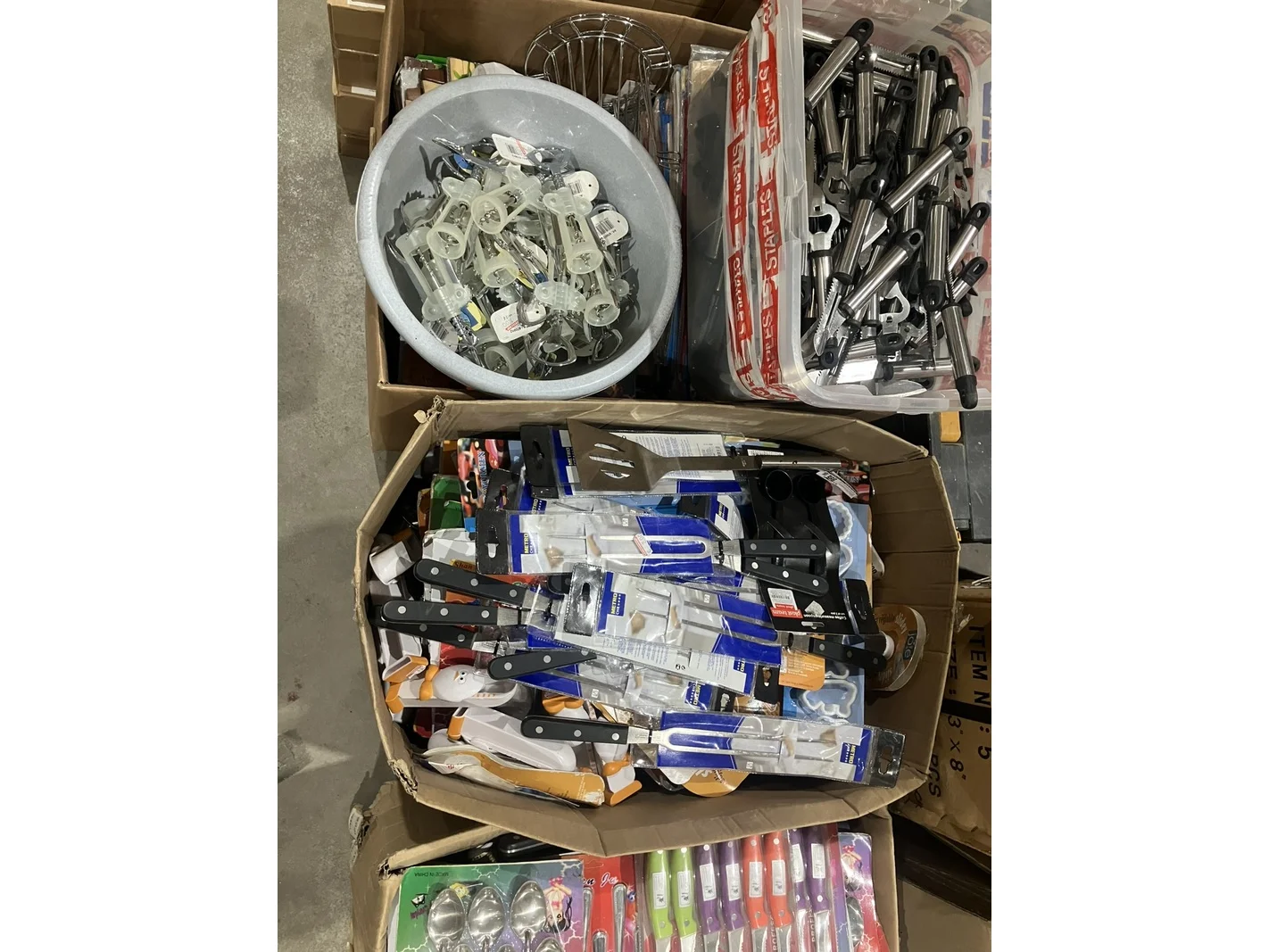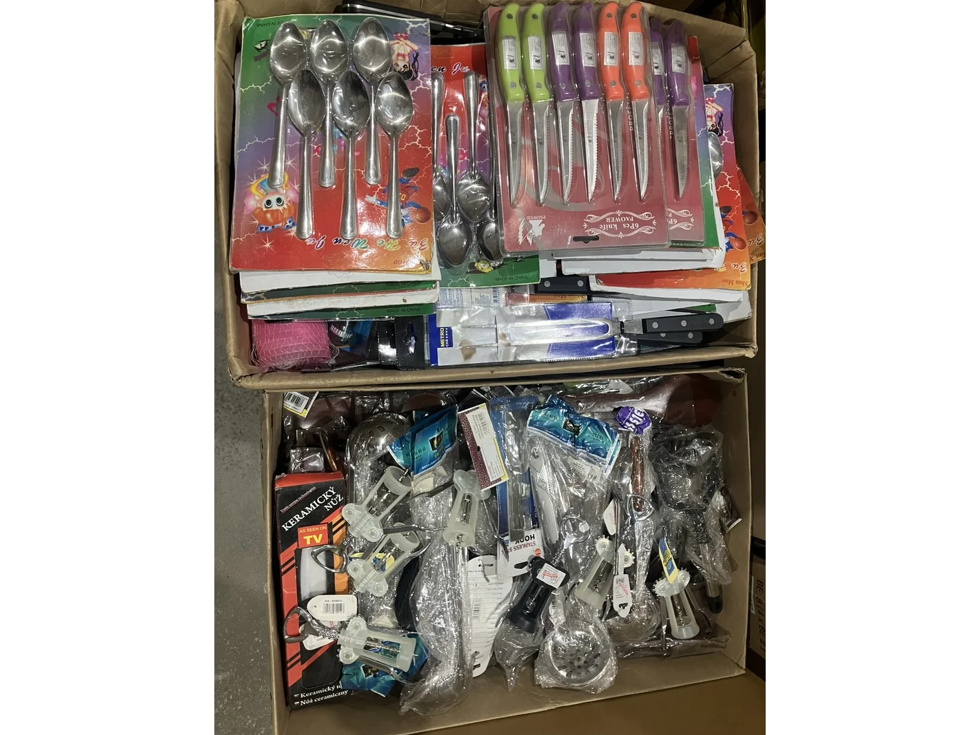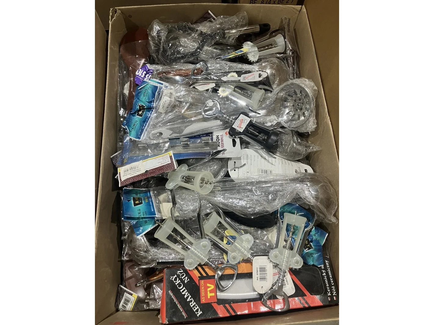 Product: Dozen keukengerei Conditie: nieuw Specificaties: o.a. messen kurkentrekkers en bestek
