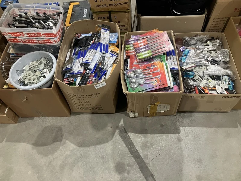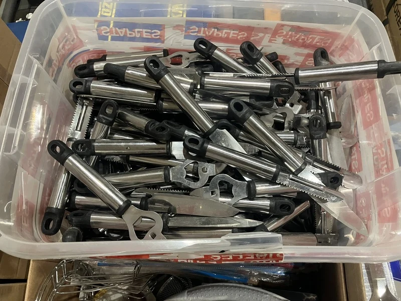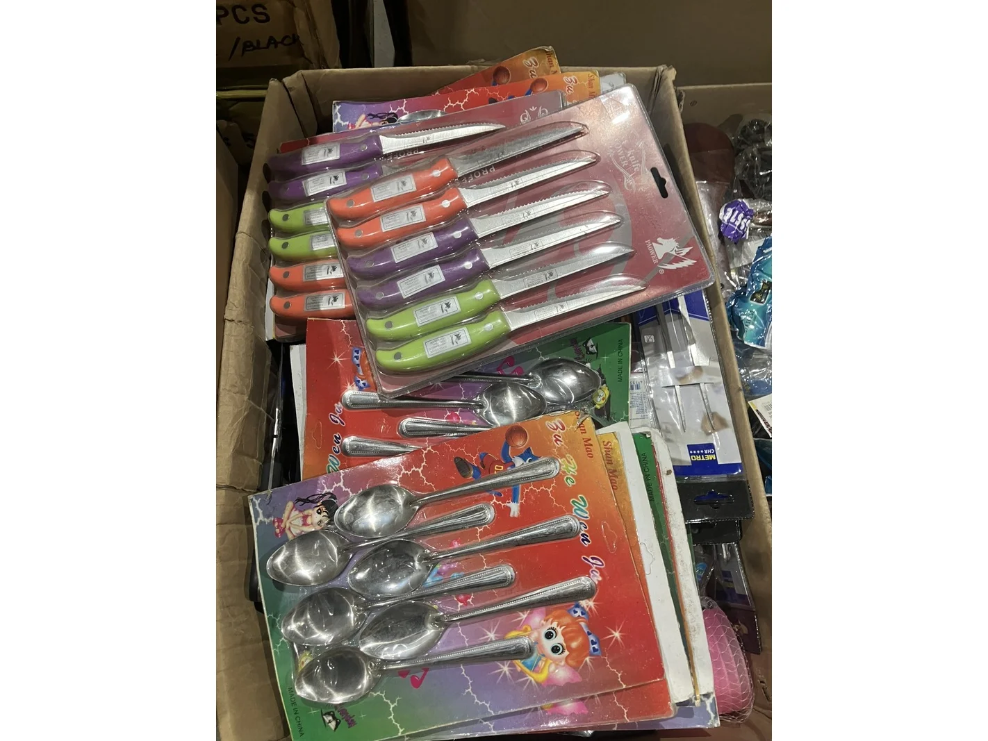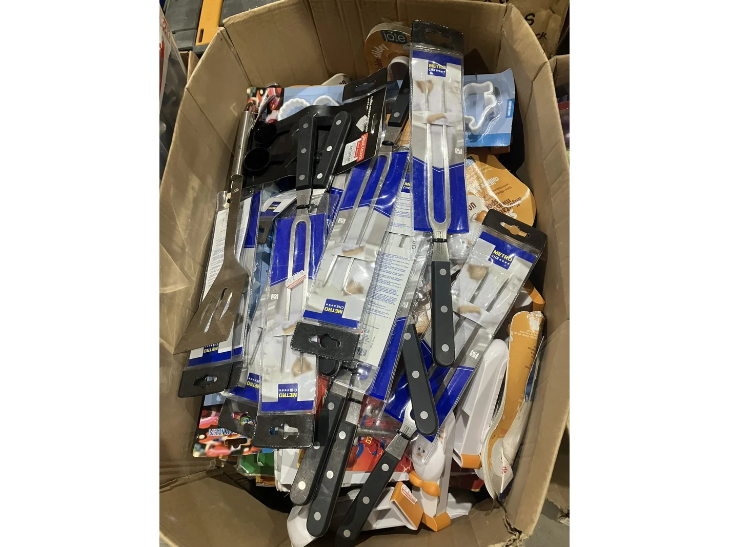 Product: Dozen keukengerei Conditie: nieuw Specificaties: o.a. messen kurkentrekkers en bestek