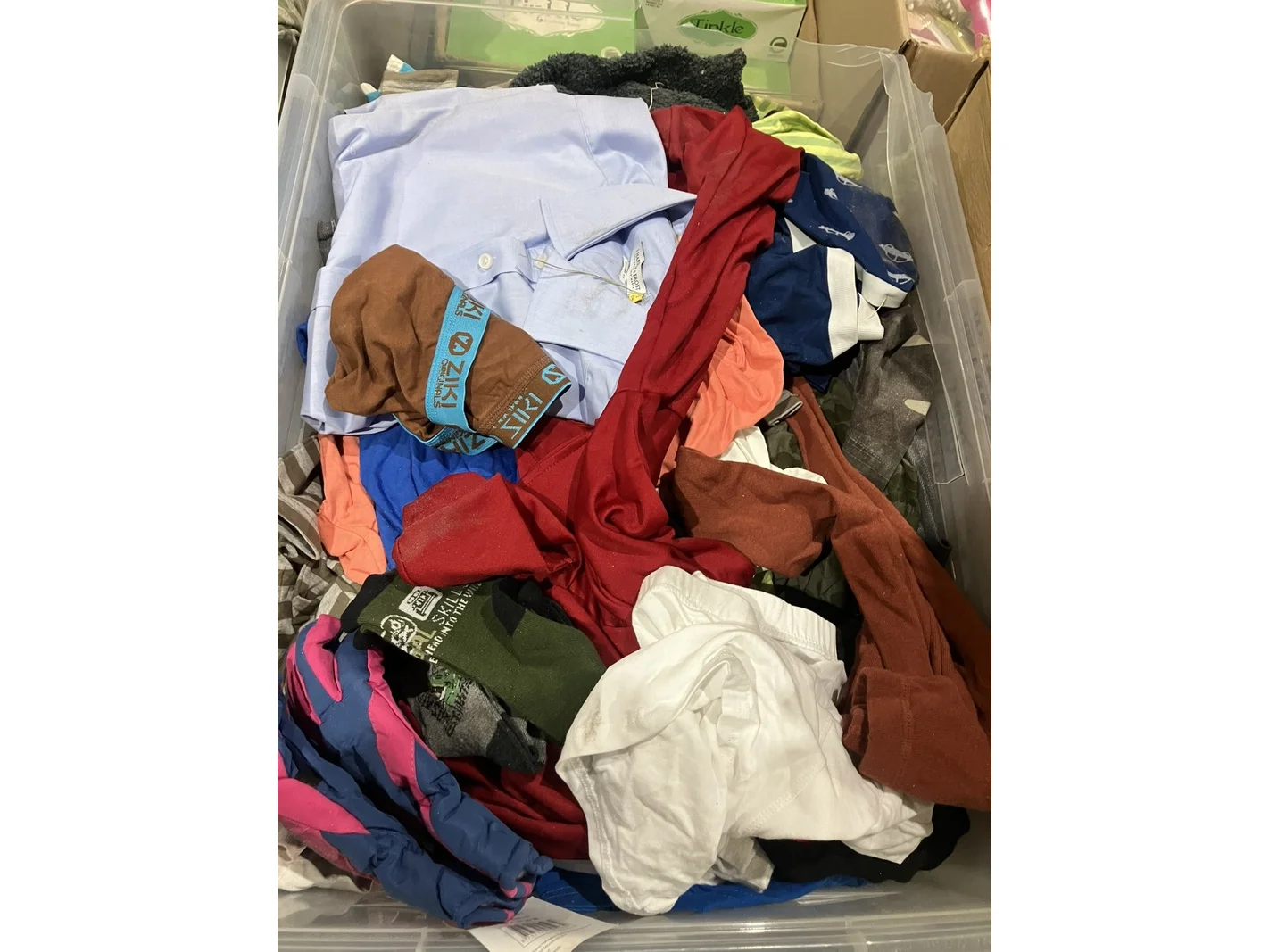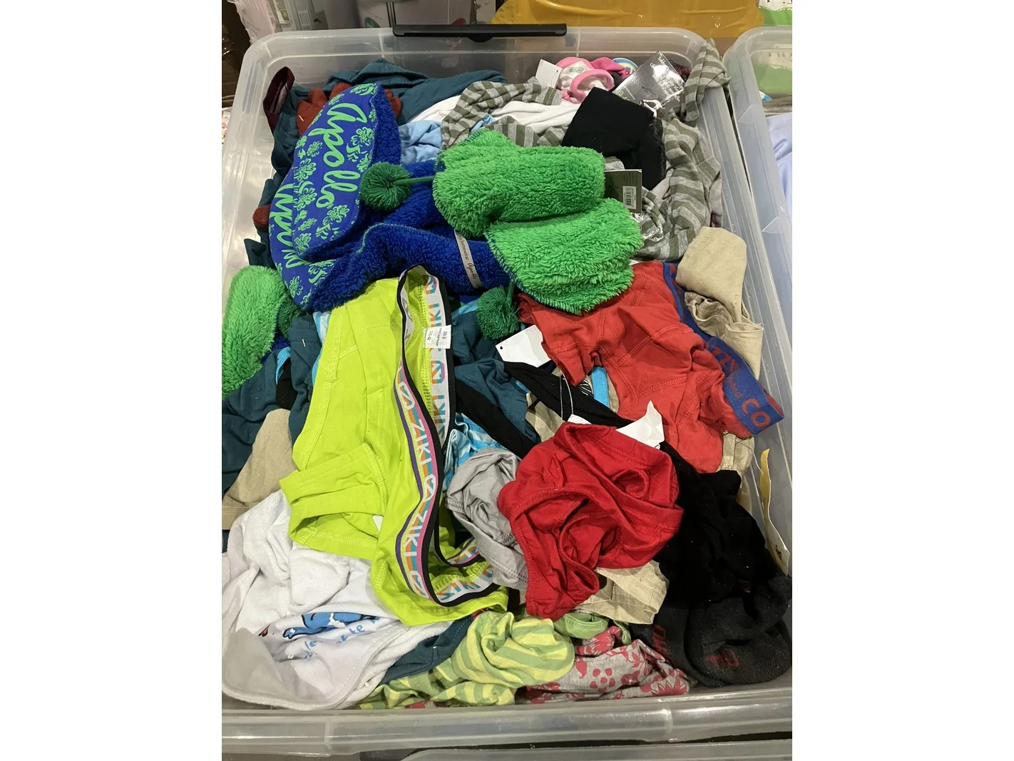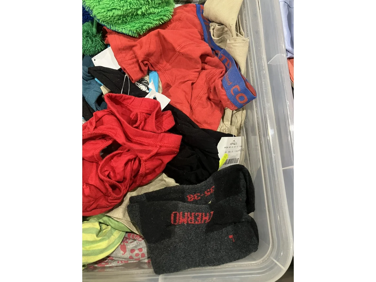 Product: Grote bakken kleding Conditie: nieuw Specificaties: o.a. broeken, ondergoed en shirts