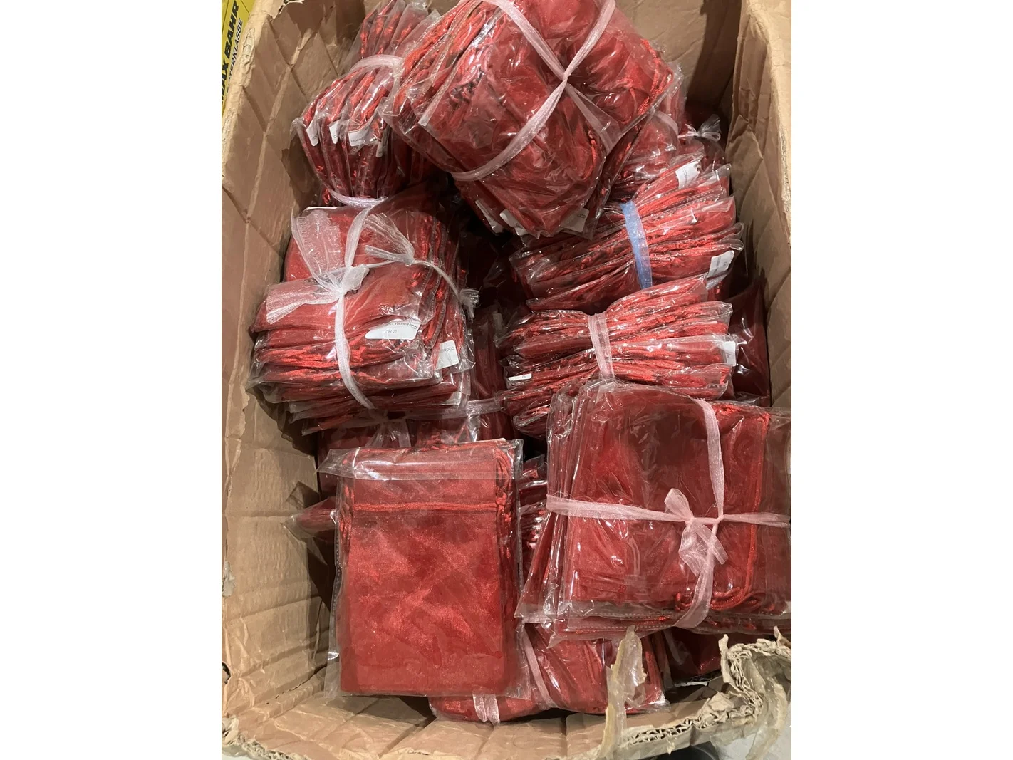 Product: Doos Organza zakjes Kleur: rood Afmeting: 12x18 cm Conditie: nieuw