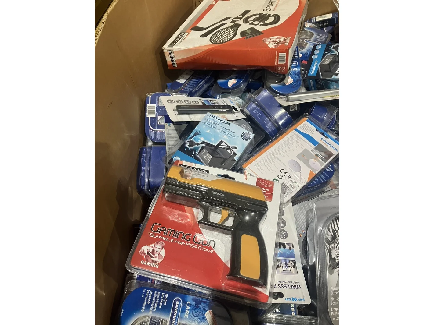Product: Kuub doos mixartikelen Conditie: nieuw Specificaties: o.a. Beeldschermreinigers, sportkit en gaming guns