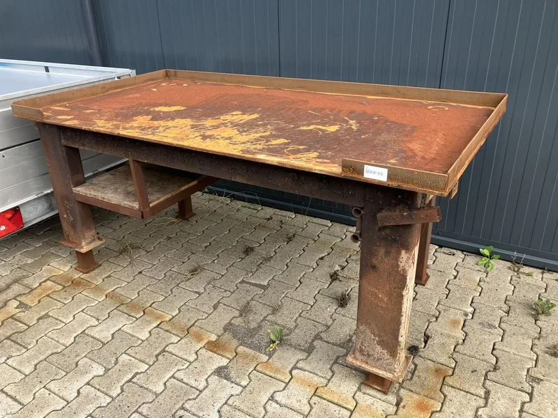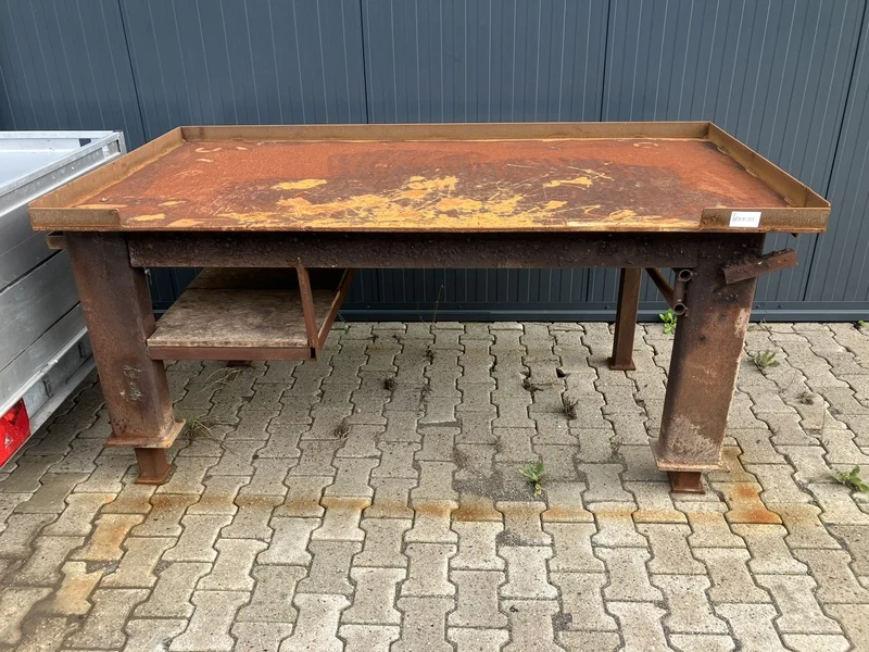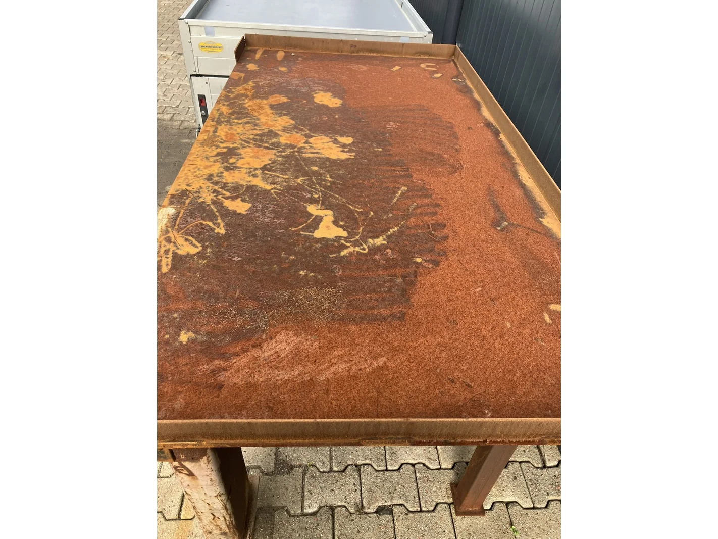 Product: Werkbank/lastafel Materiaal: IJzer Afmeting: 209x107x99 cm Conditie: gebruikt Specificaties: bladdikte 1,5 cm