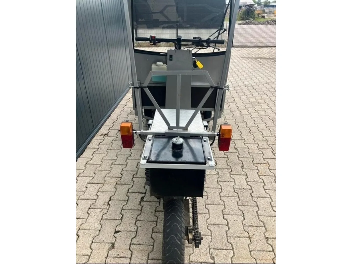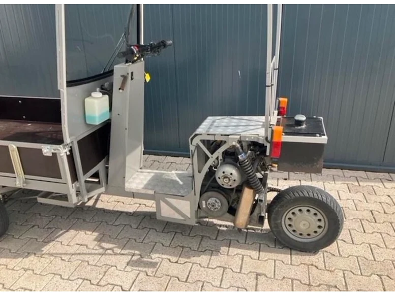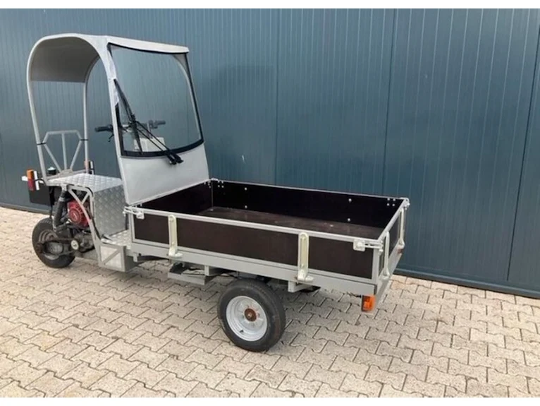 Product: Bakfiets brommer Conditie: nieuw Specificaties: Afmeting bak. Lengte 1.60 x breed 1.0 hoogte 24 cm. Nieuwe machine alleen motor is gebruikt. Honda motor 5.5 gx 160. Echt raam voorin. Richting aanwijzer. Toeter. Verlichting. Groot licht. Ruitenwisser. Elektrische start. Voor en achteruit. Ideaal voor op de camping of eigen terrein.