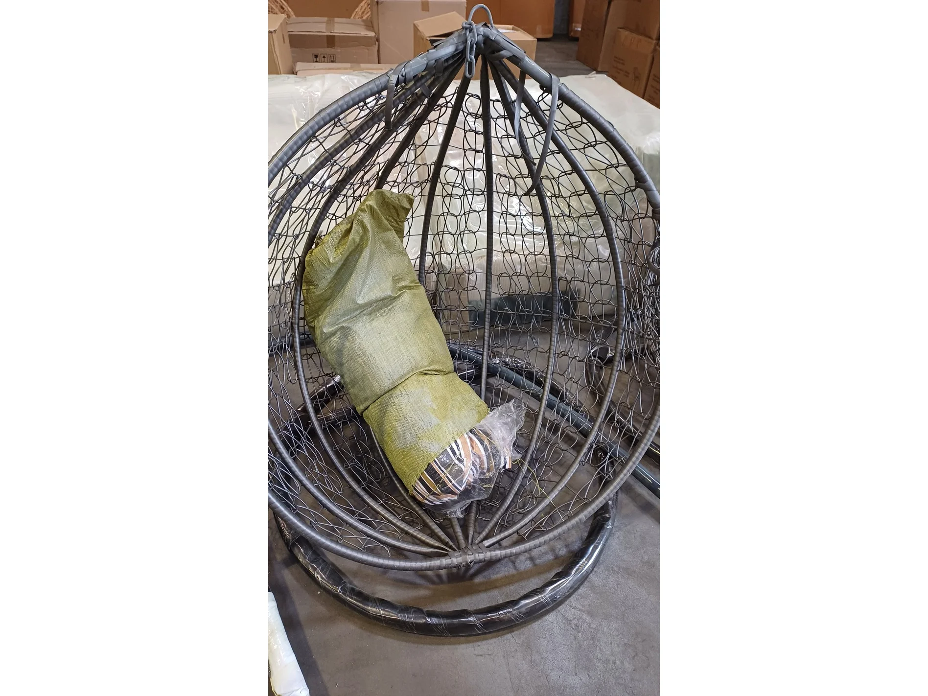 Merk: SanderZ Product: Ei hangstoel binnen/buiten Materiaal: Gepoedercoat ijzer pu ratan rotan Afmeting: 100x120x81 BouwJaar: 2025 Conditie: Nieuw Specificaties: