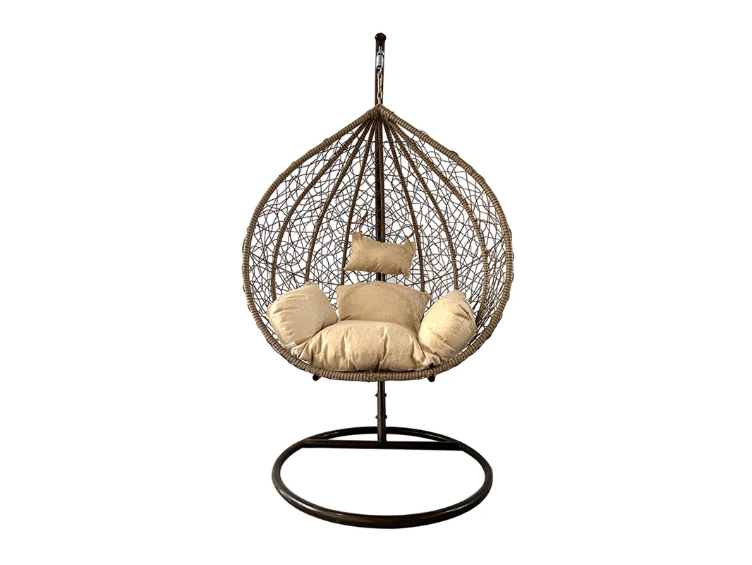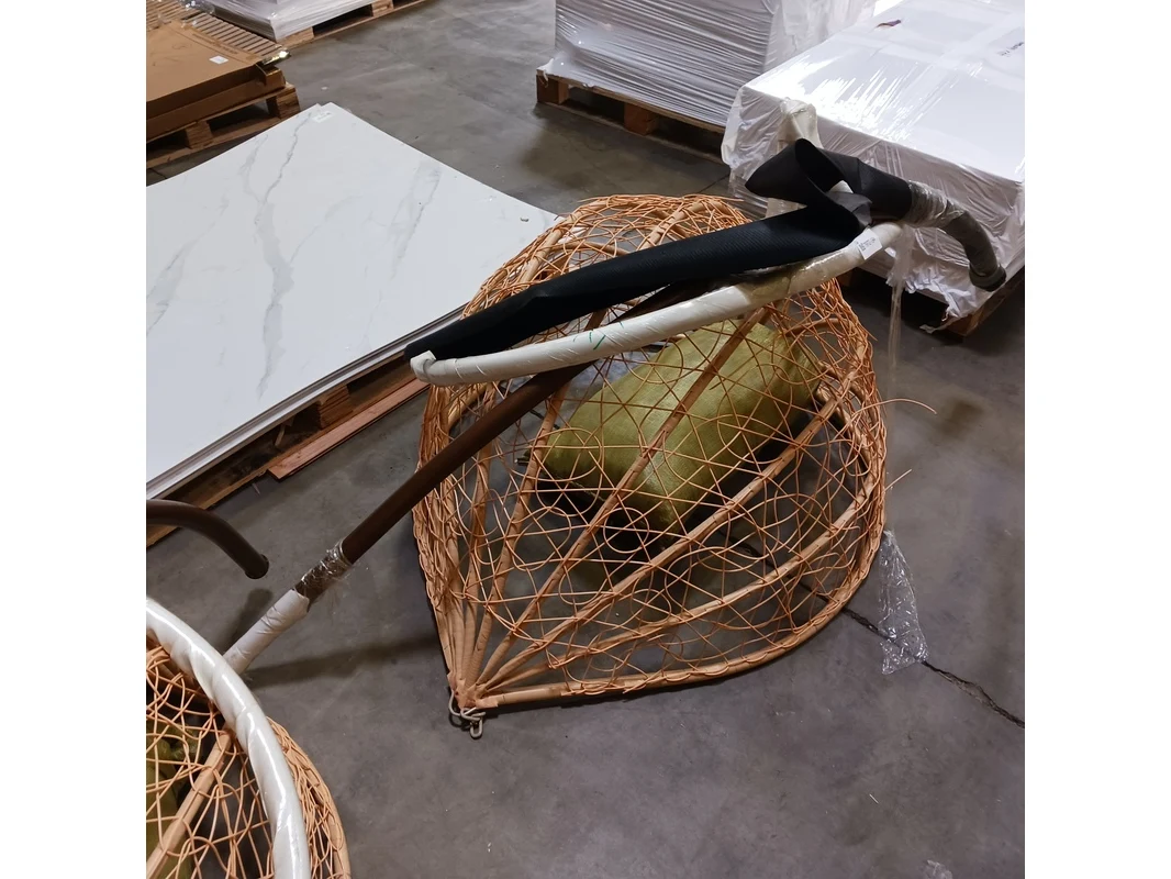 Product: Eistoel Swing chair Materiaal: Gepoedercoat ijzer pu rotan ratan BouwJaar: 2025 Conditie: Nieuw Specificaties: Binnen of buiten gebruik incl. kussens