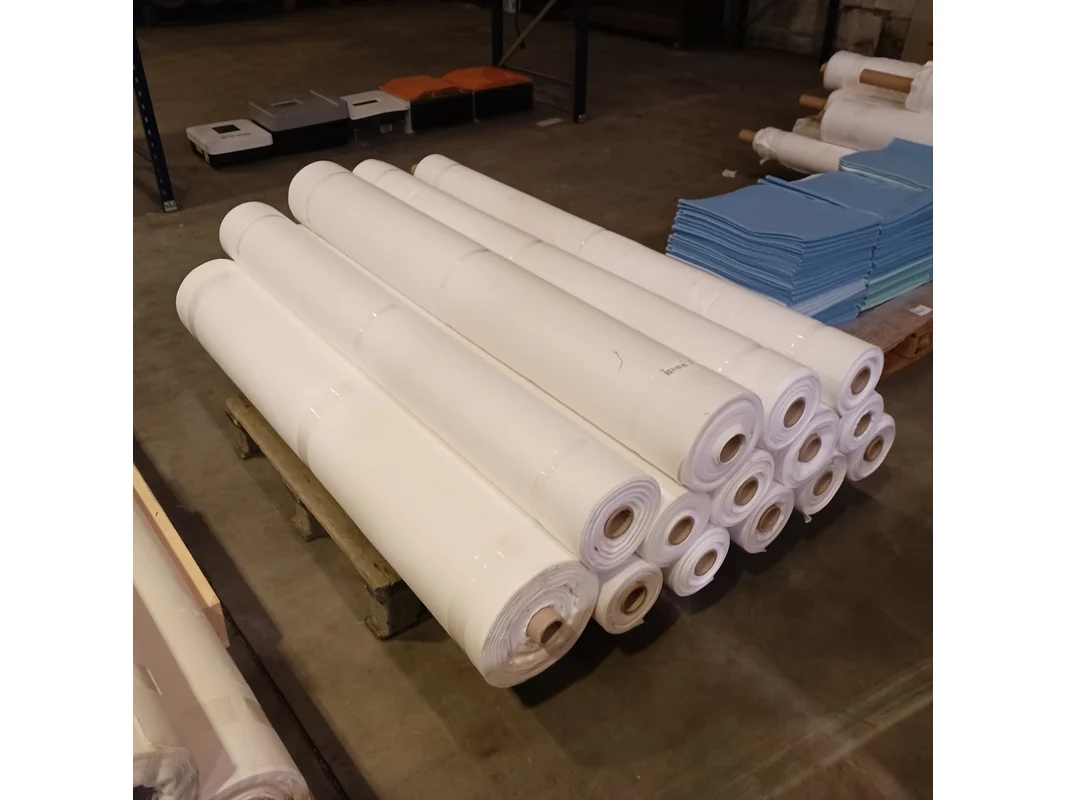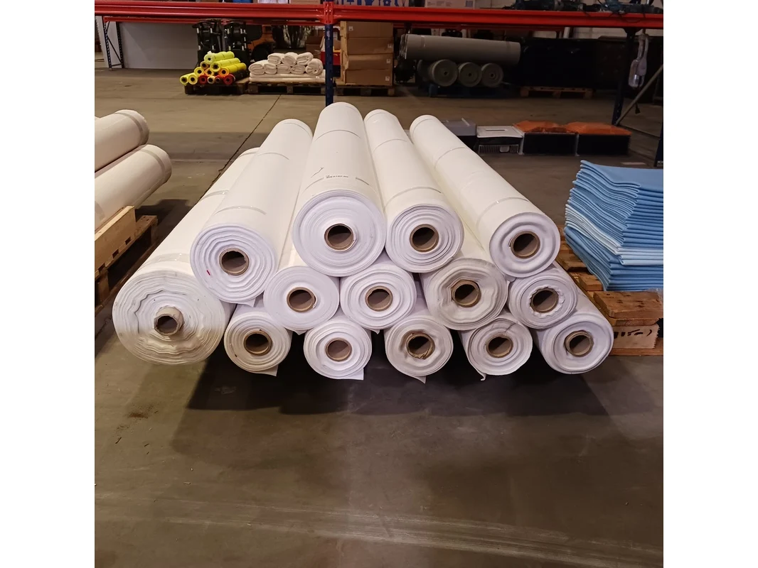 Product: Rol tafelmolton/tafelbeschermer Afmeting: Breedte ca. 150 cm Specificaties: Molton/sandwich, 2-laags molton met pu-tussenlaag, waterbestendig. Kan op maat gesneden/geknipt worden en behoeft geen verdere afwerking. Totale hoeveelheid ca. 315 meter