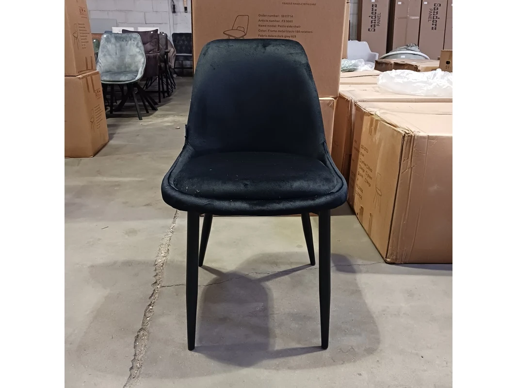 Merk: SanderZ Product: Eetkamerstoel velvet Kleur: Zwart Materiaal: Velvet BouwJaar: 2025 Conditie: Nieuw Specificaties: 1x doos met 4 stuks