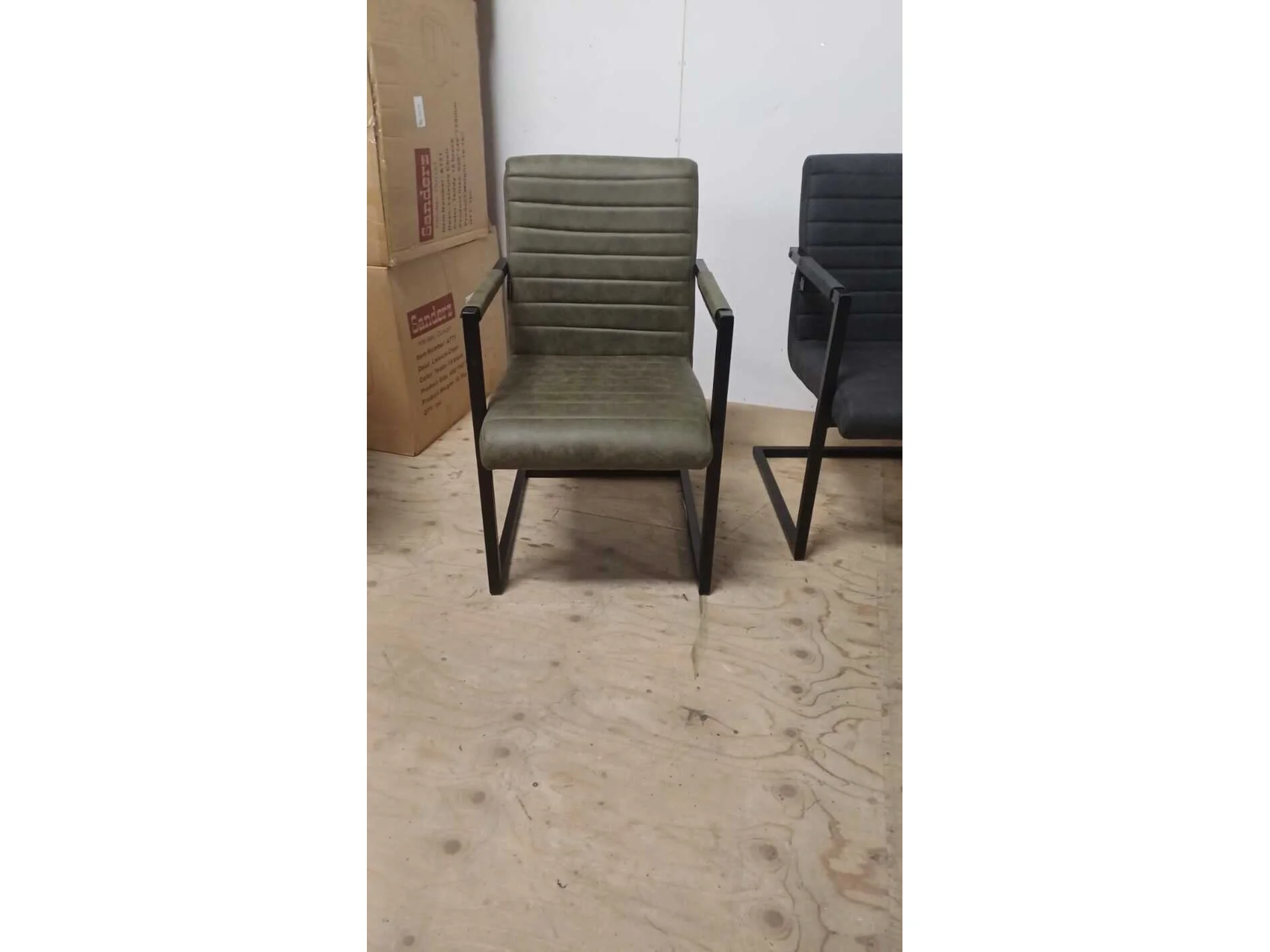 Merk: SanderZ Product: Industriële eetkamerstoel Kleur: Groen Materiaal: Microvezel BouwJaar: 2025 Conditie: Nieuw