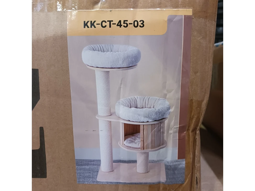 Merk: SanderZ Product: Krabpaal kat Materiaal: Hout sisal velvet Afmeting: 65x45x120 BouwJaar: 2025 Conditie: Nieuw Specificaties: Degelijke krabpaal, nieuw in doos.