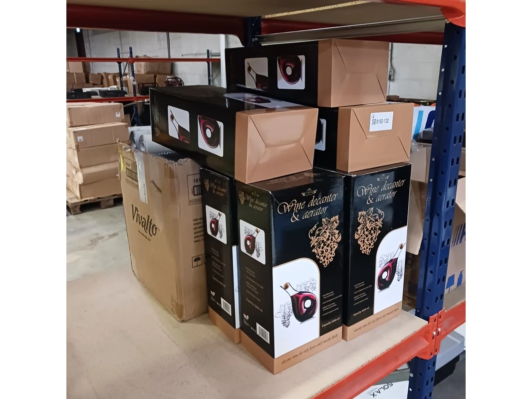 Merk: Vivalto Product: Karaf 1,2L en sets whiskeyglazen Kleur: Wit Materiaal: Glas Conditie: Nieuw Specificaties: 10 stuks grote karaffen, dik glas 6 stuks sets whiskeyglasen, dik glas