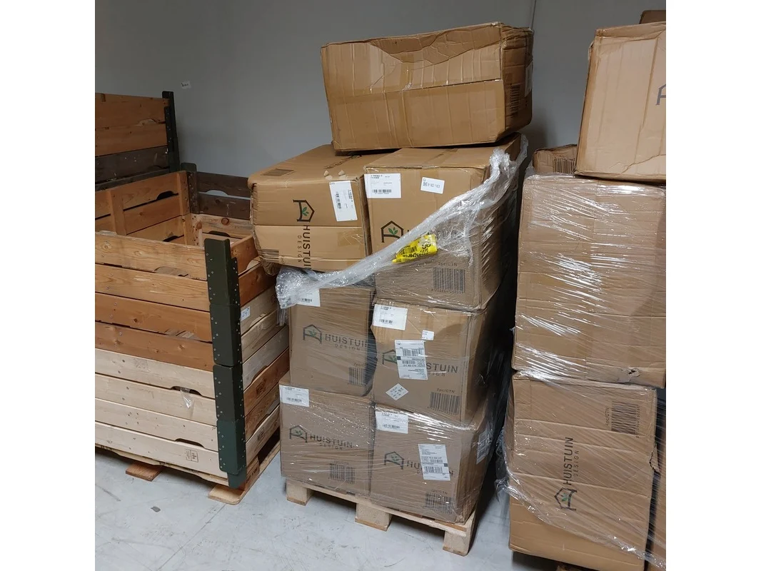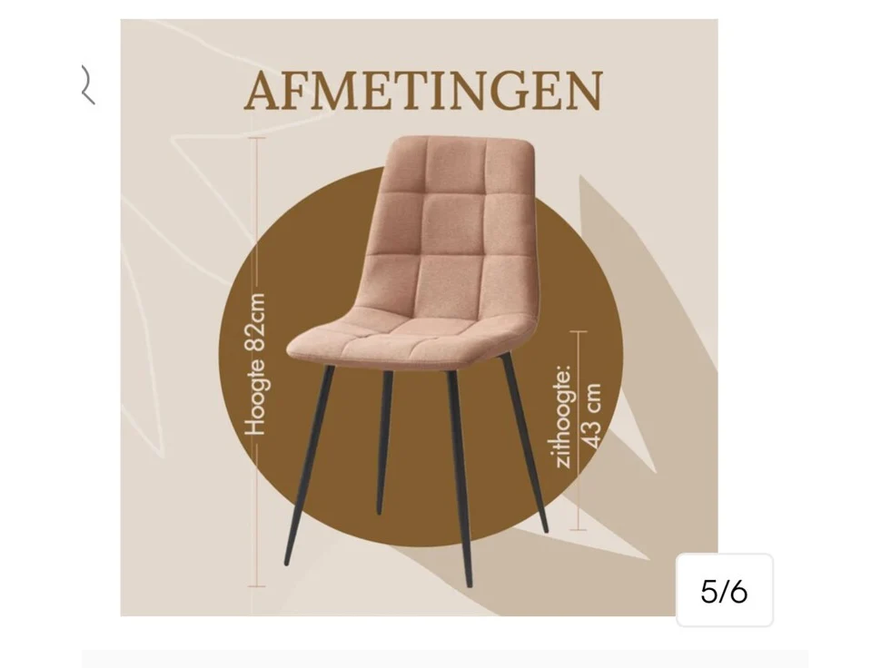 Merk: Huistuindesign Product: Eetkamerstoel Kleur: Bruin Conditie: Nieuw Specificaties: Gaat om overstock producten. 13x doos, 2 stoelen per doos