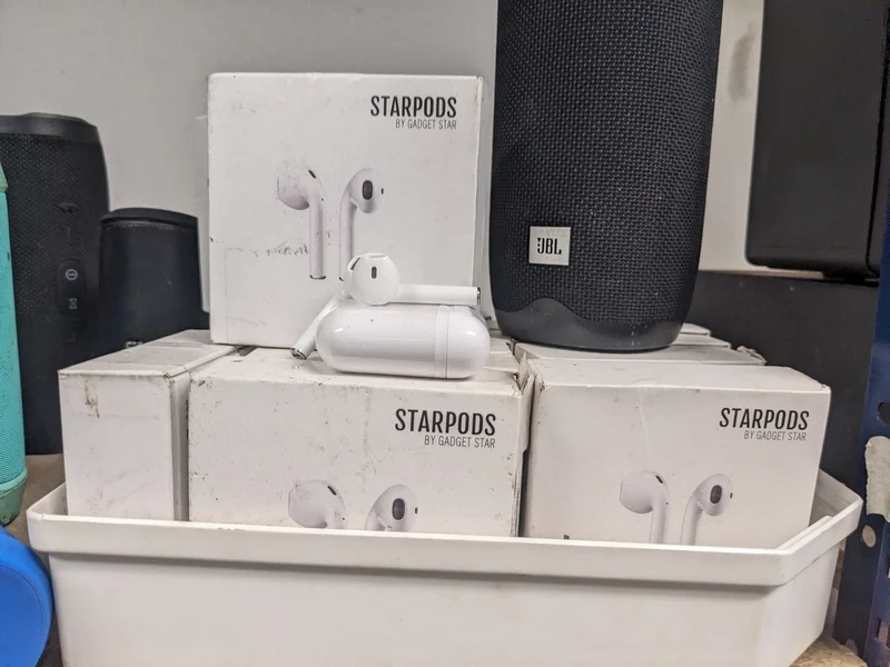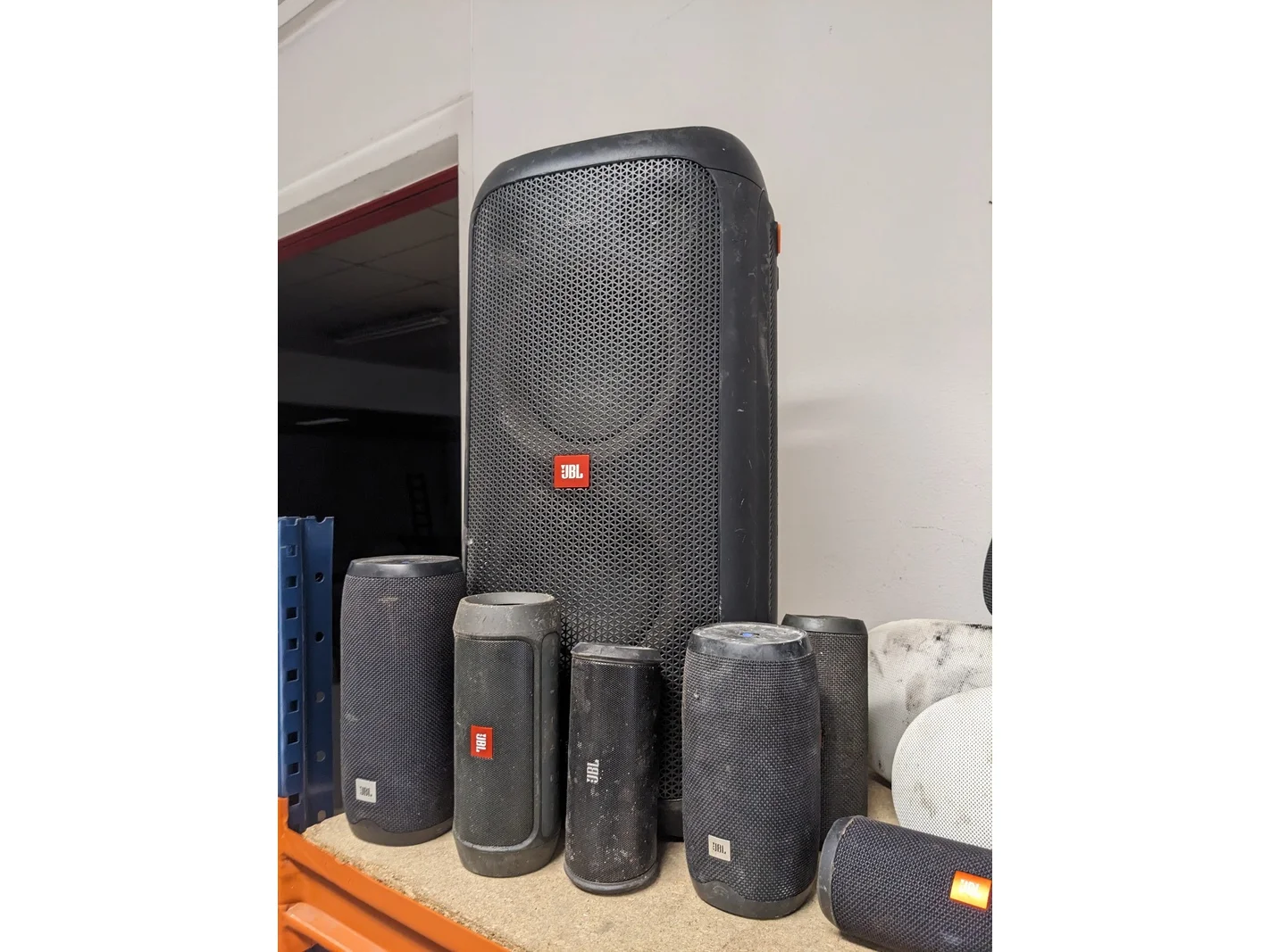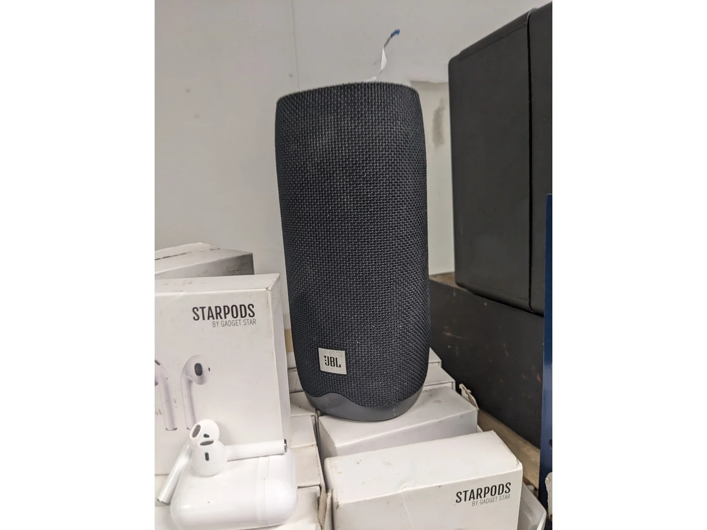Product: Partij JBL boxen en draadloze oordopjes Conditie: Gebruikt Specificaties: Bestaande uit: - Diverse JBL boxen ( werking onbekend ) - Partij draadloze oordopjes Starpods ( Nieuw )