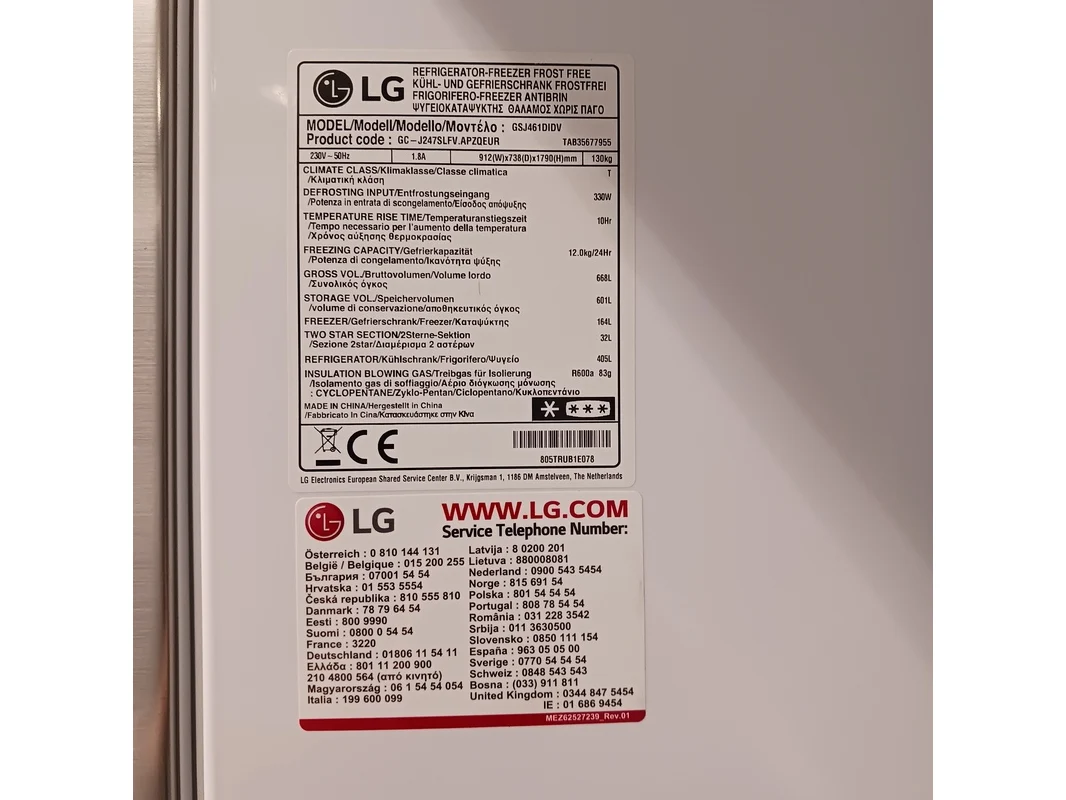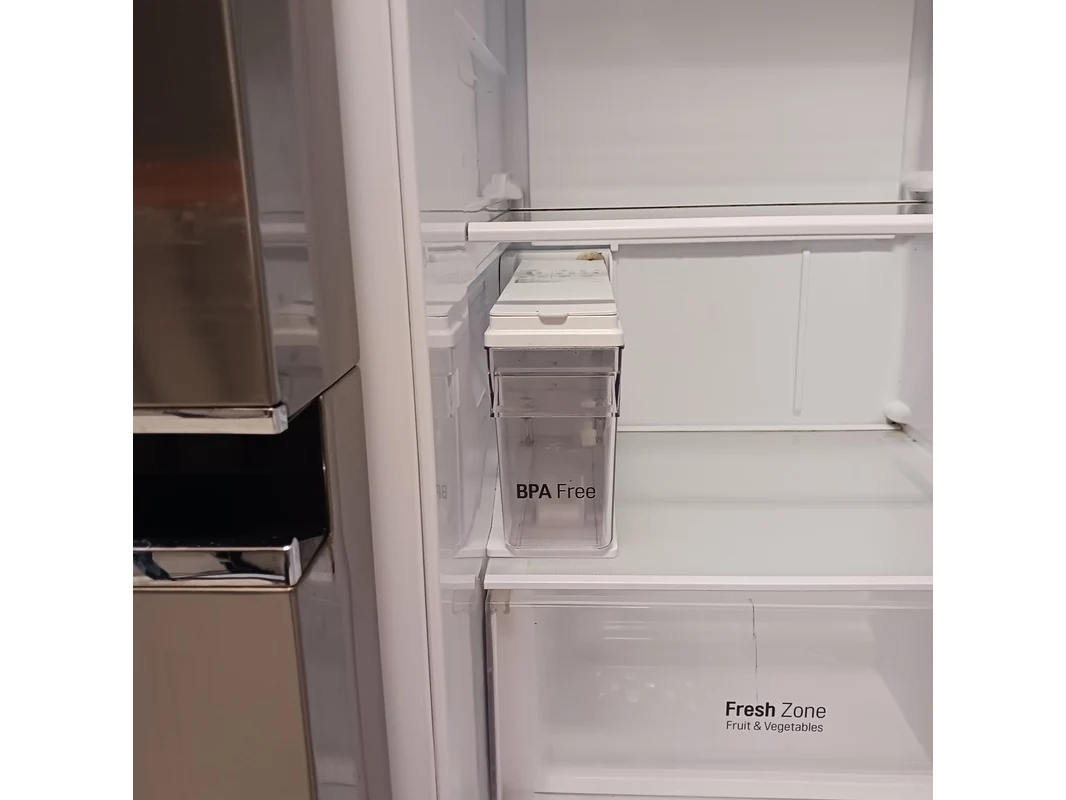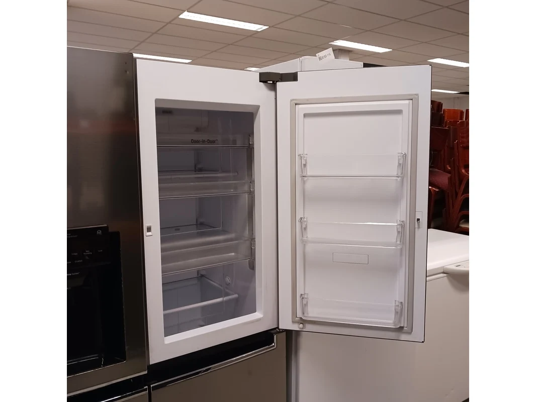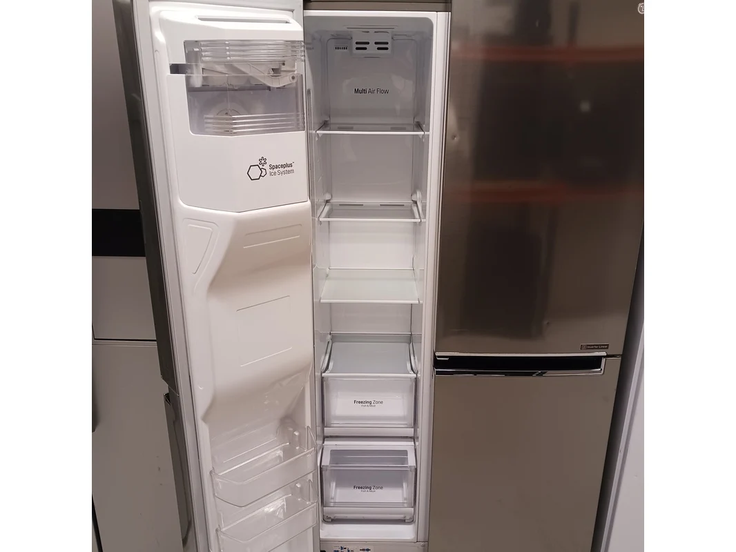 Merk: LG Product: Amerikaanse koelkast Kleur: Grijs / Chroom Conditie: Gebruikt Specificaties: Amerikaanse koelkast met door in door systeem. + Ijs en water system Ijs en water system niet kunnen testen. Literinhoud koeling 405 liter Literinhoud vriezer 164 liter Koeltechnisch goed