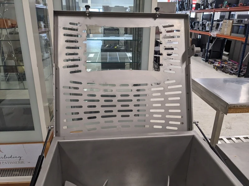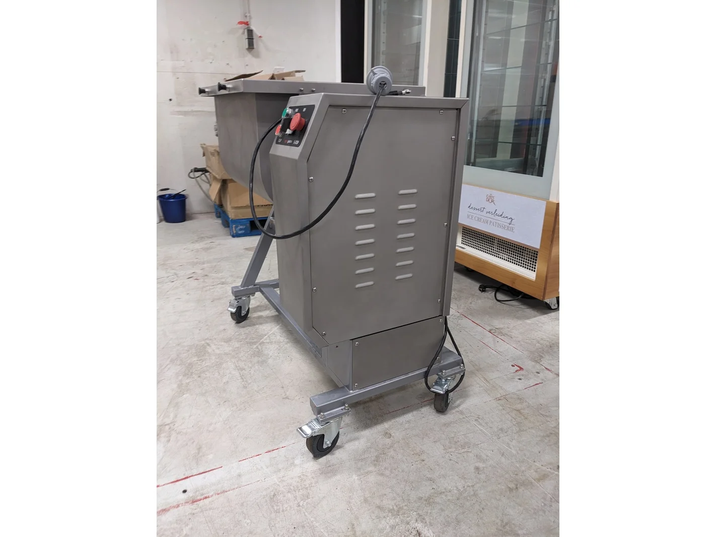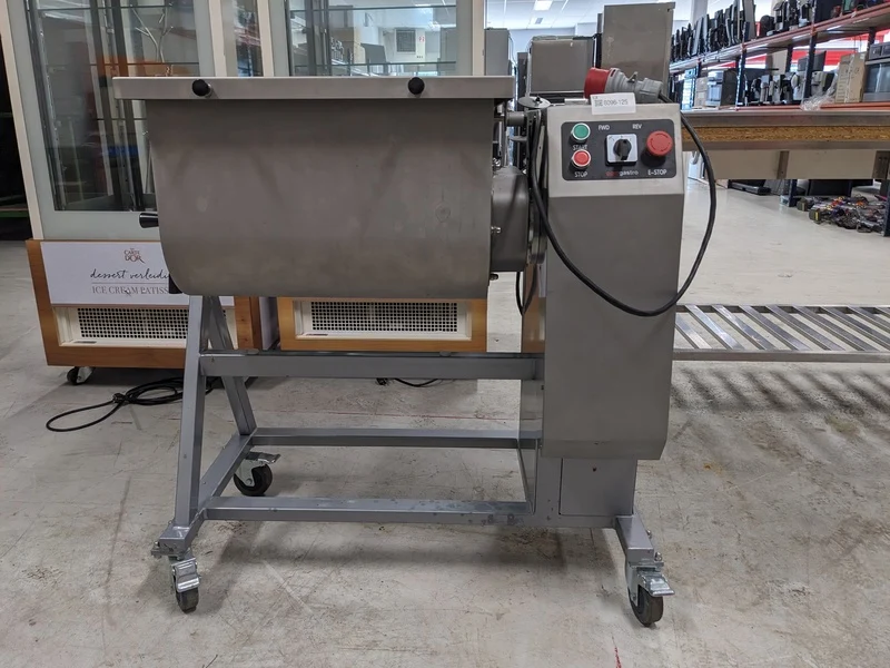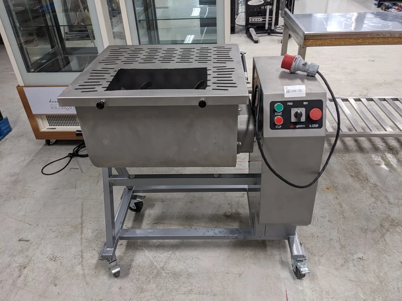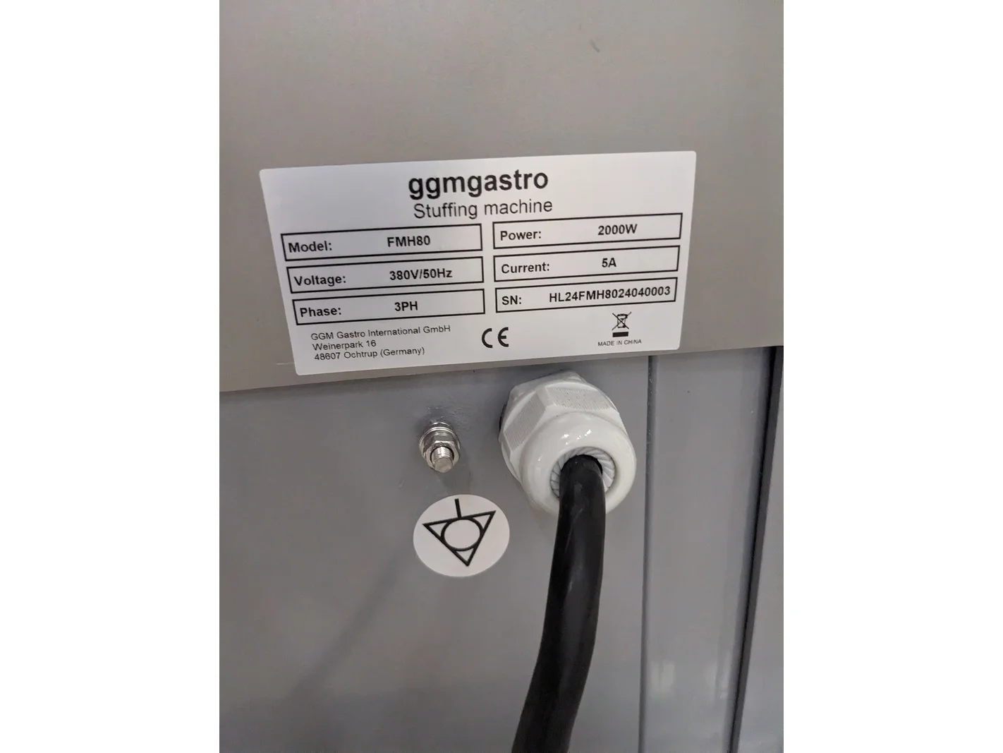 Merk: GGM Gastro Product: Industriële vleesmolen Afmeting: hxbxd ca. 101x97x60 cm Conditie: Gebruikt Specificaties: 400V, 2000W, verrijdbaar Deze machines worden gebruikt voor het verwerken van grote hoeveelheden vlees tot gehakt.