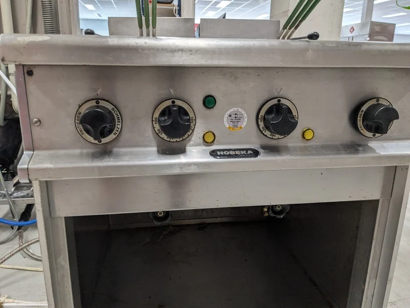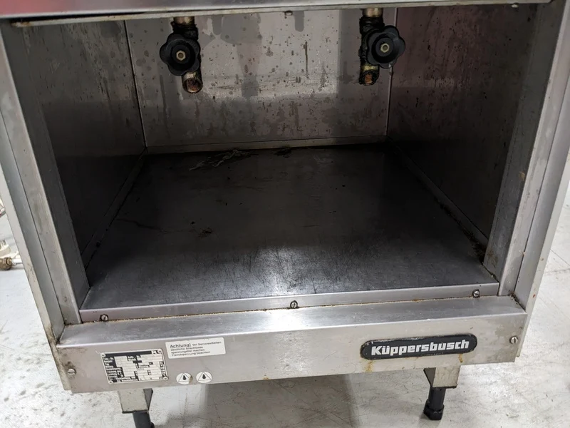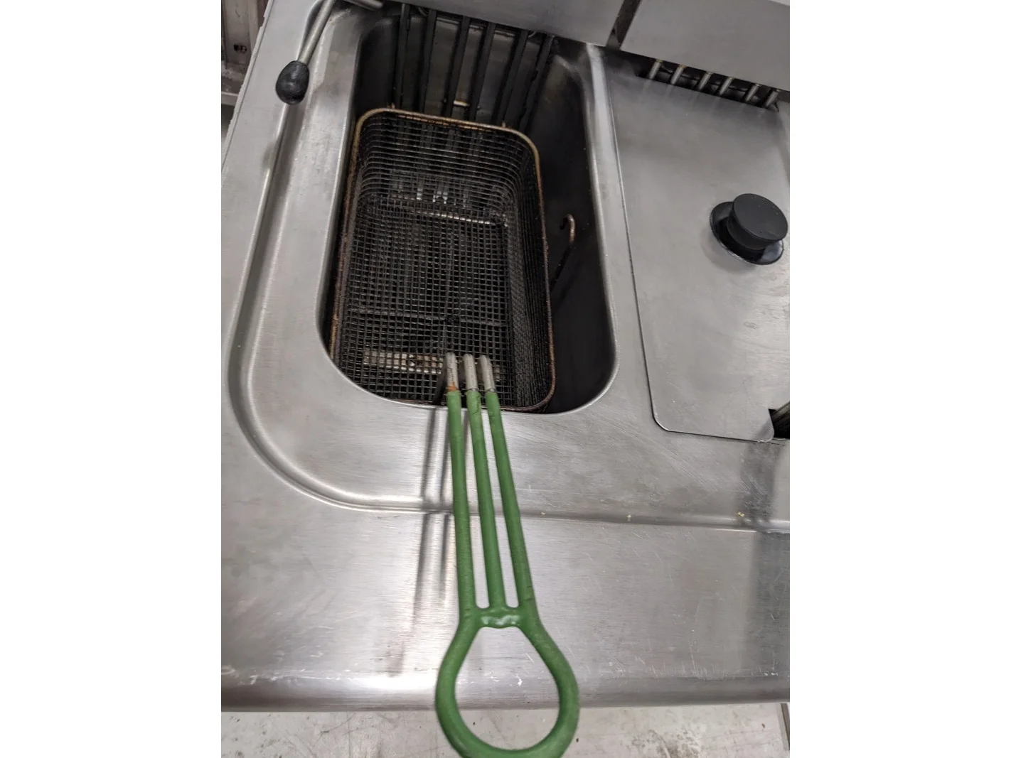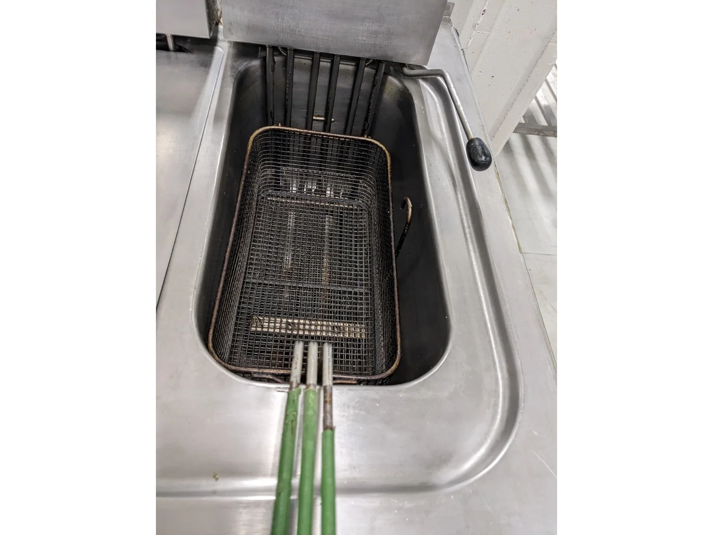 Merk: Küppersbusch Product: Dubbele staande frituurpan Afmeting: hxbxd ca.100x60x71 cm Conditie: Gebruikt Specificaties: Deze frituurpan heeft twee pannen van elk 10 liter. Hij werkt op 380 volt en heeft een aansluitwaarde van 32 Ampère.