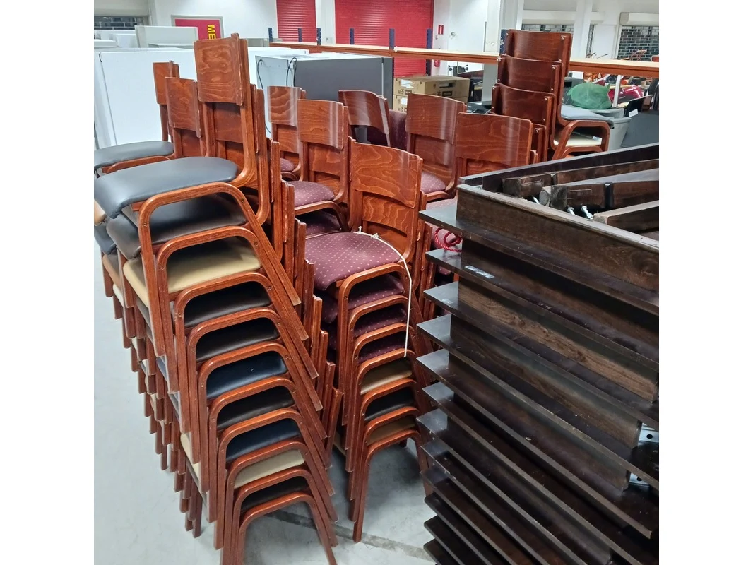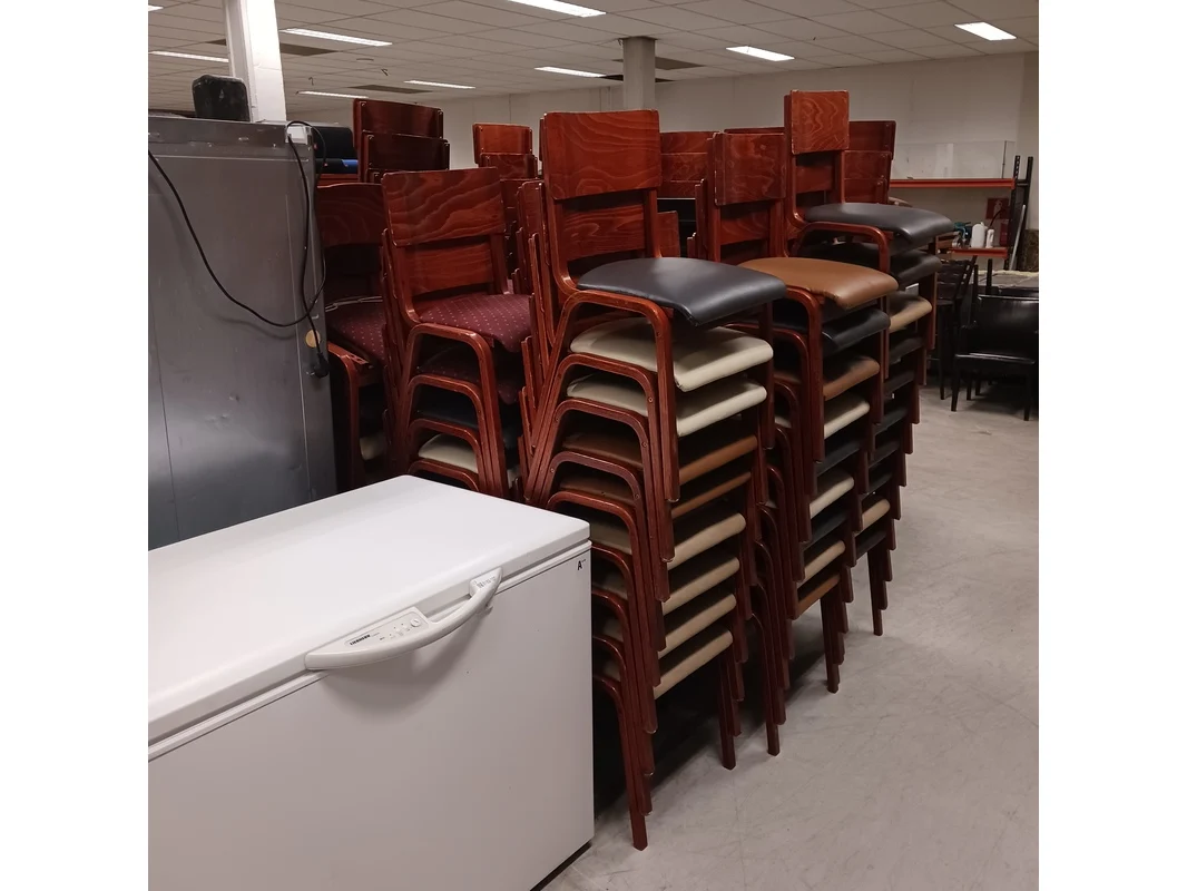 Product: Stapelbare stoel Conditie: Gebruikt Specificaties: Diverse soorten stoelen