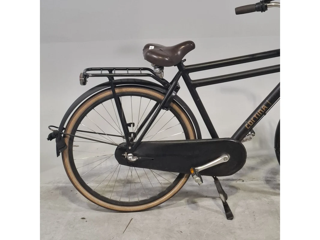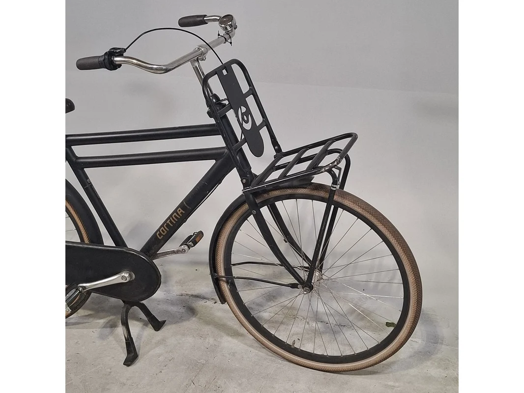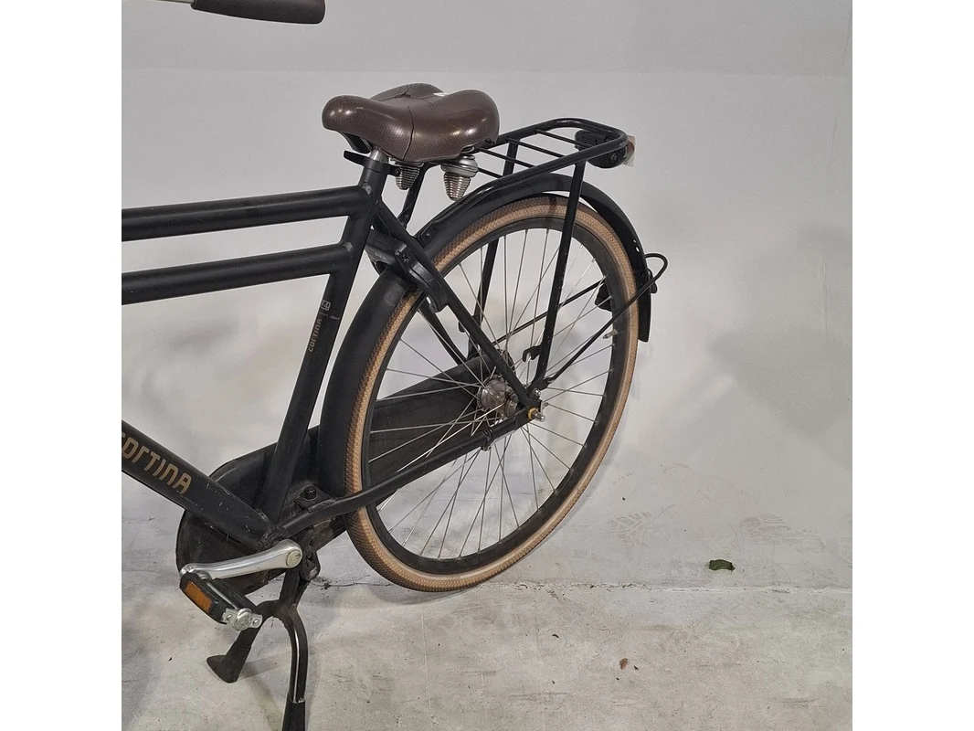 Merk: Cortina Product: Herenfiets Afmeting: Framemaat ca. 56 cm. Conditie: gebruikt Specificaties: 3 versnellingen Achterspatbord afgebroken Zadel gescheurd