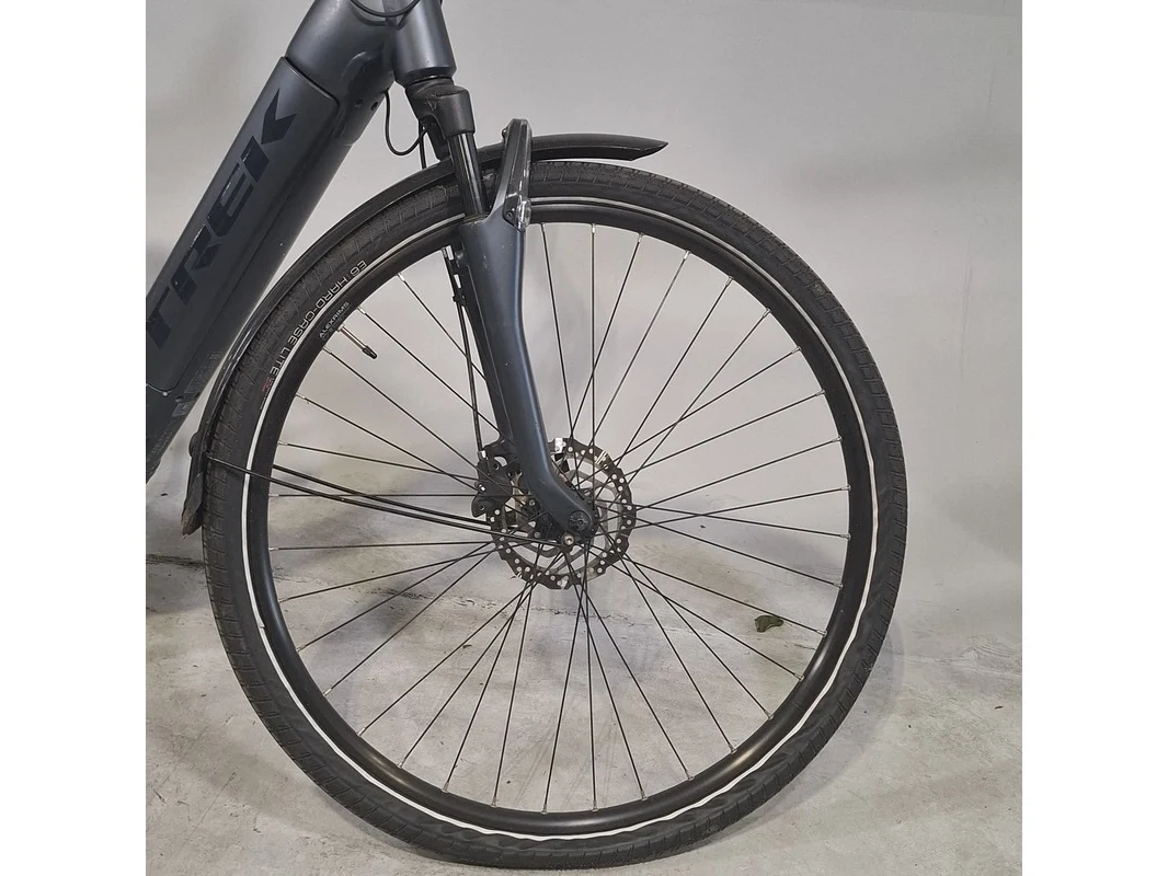 Merk: Trek Product: Elektrische damesfiets Afmeting: Framemaat ca. 51 cm. Conditie: gebruikt Specificaties: 8 versnellingen Geveerde voorvork Geveerde zadelpen Bosch Active Line Plus middenmotor Aanwezigheid accu onbekend, accu compartiment zit op slot Inclusief fietscomputer, gaat niet aan Exclusief sleutels en acculader