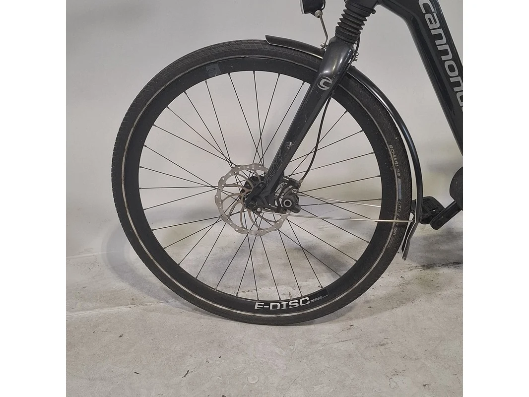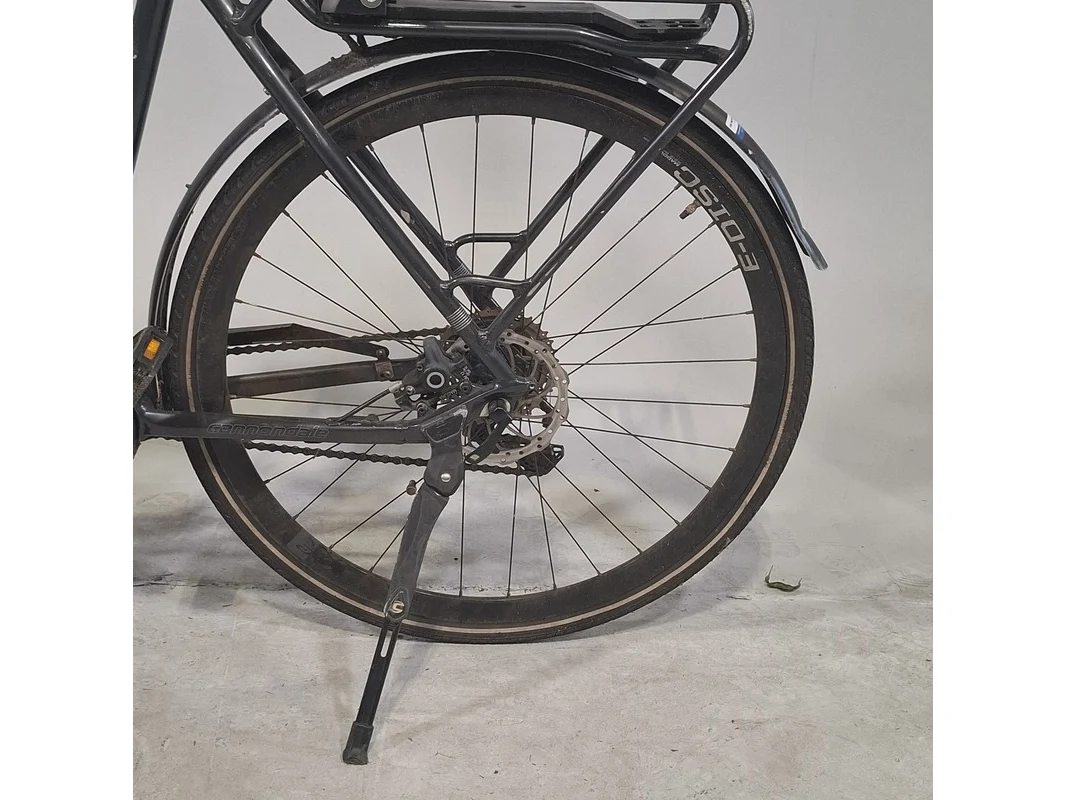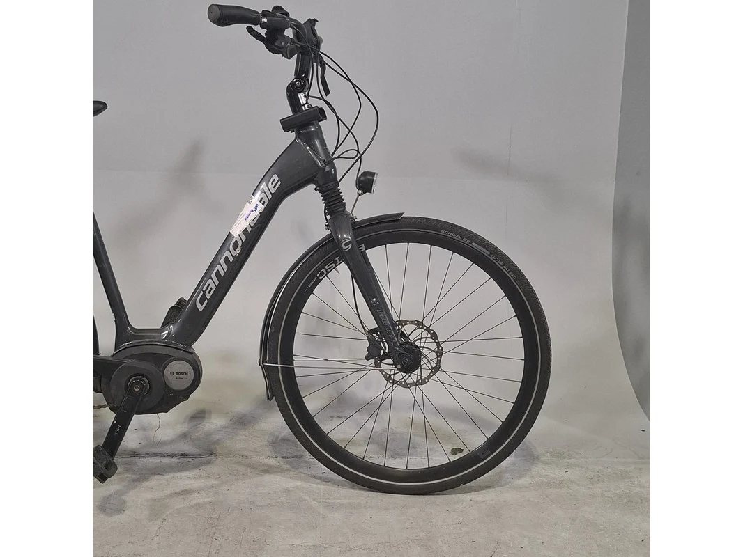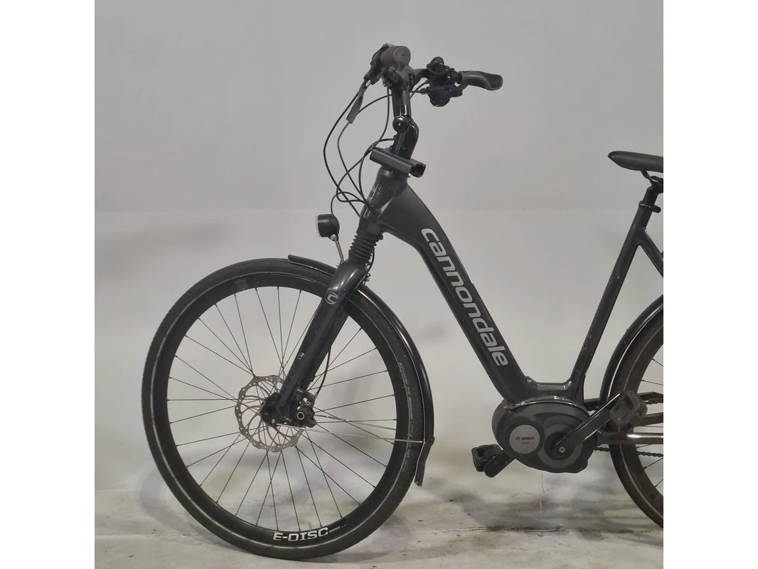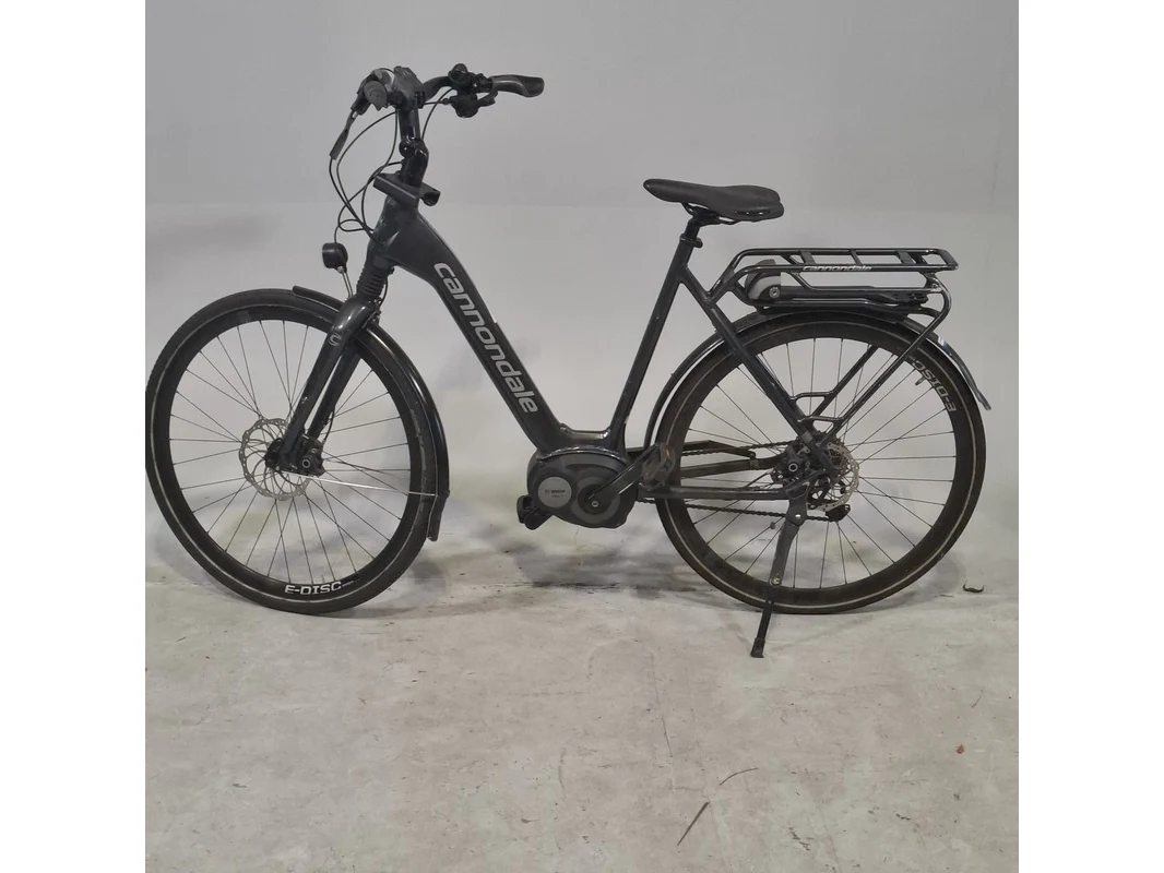 Merk: Cannondale Product: Elektrische damesfiets Afmeting: Framemaat ca. 58,5 cm. Conditie: gebruikt Specificaties: 9 versnellingen Geveerde voorvork Bosch Active Line middenmotor Exclusief sleutels, fietscomputer, acculader en accu Schijfremmen voor en achter