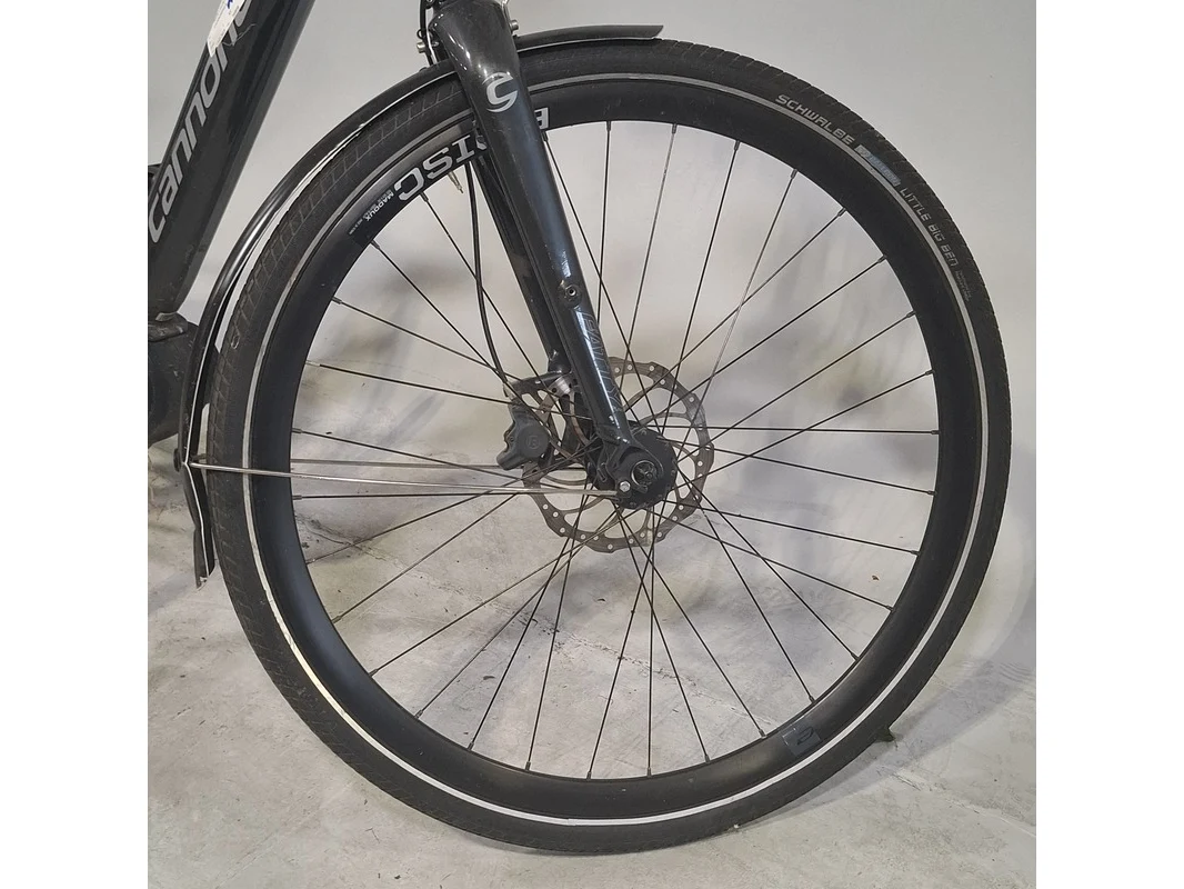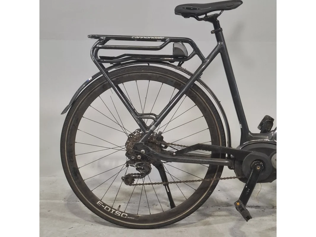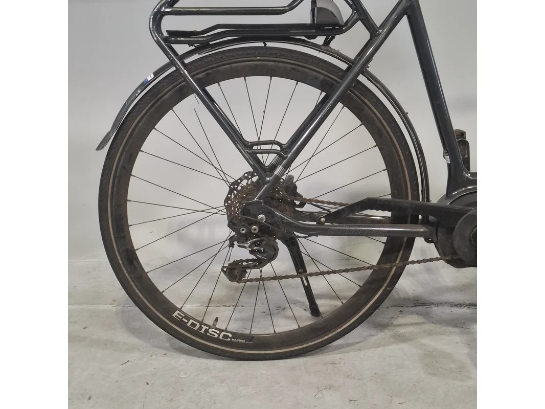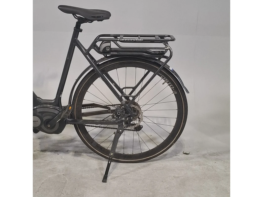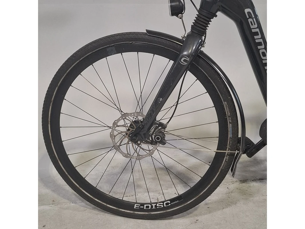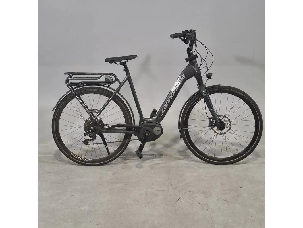 Merk: Cannondale Product: Elektrische damesfiets Afmeting: Framemaat ca. 58,5 cm. Conditie: gebruikt Specificaties: 9 versnellingen Geveerde voorvork Bosch Active Line middenmotor Exclusief sleutels, fietscomputer, acculader en accu Schijfremmen voor en achter