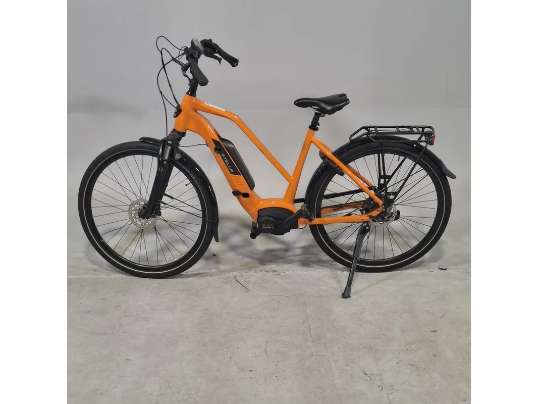 Merk: Stella Product: Elektrische damesfiets Afmeting: Framemaat ca. 53 cm. Conditie: gebruikt Specificaties: 10 versnellingen Geveerde voorvork Geveerde zadelpen Inclusief accu en fietscomputer Accu staat op slot Slot fiets doorgezaagd Afgelezen tellerstand: 1195 Bosch Powerpack 400 accu Bosch Performance Line middenmotor Exclusief sleutels en acculader