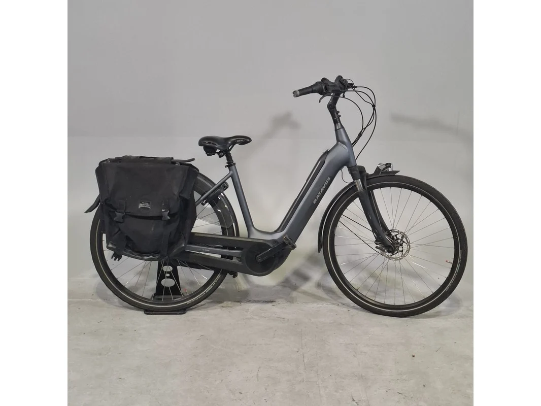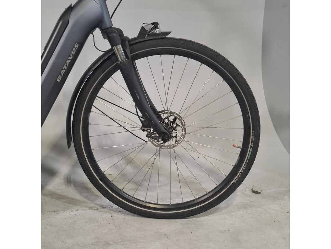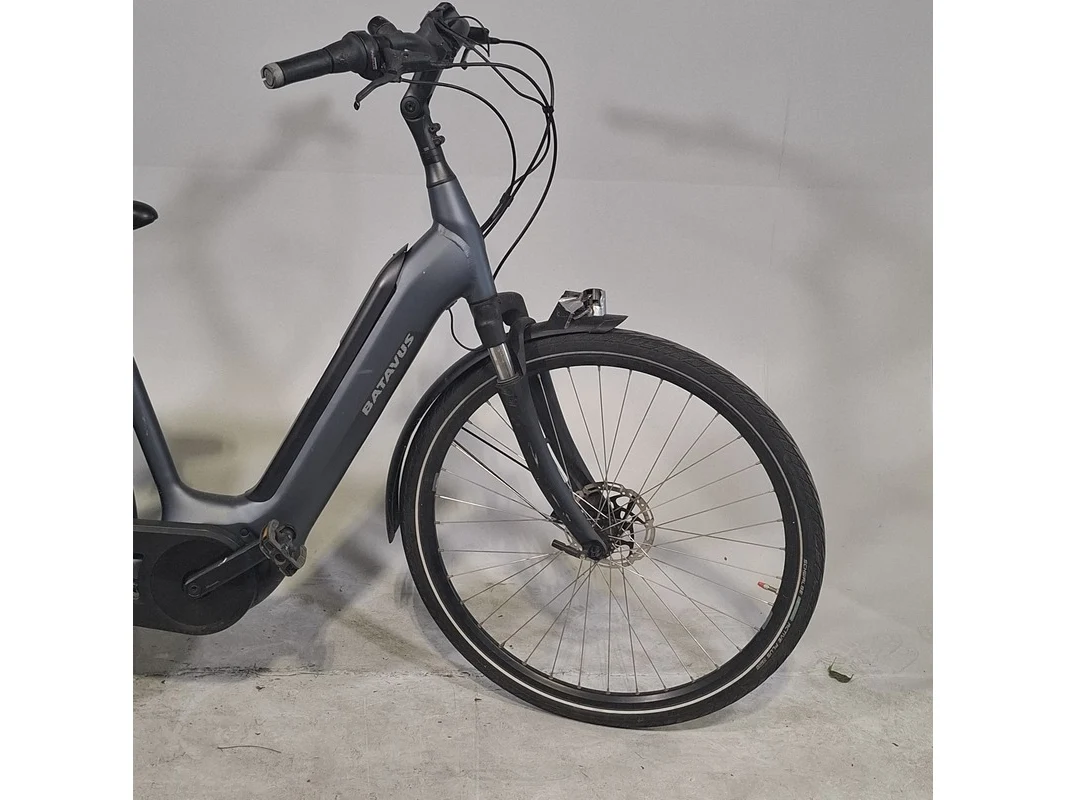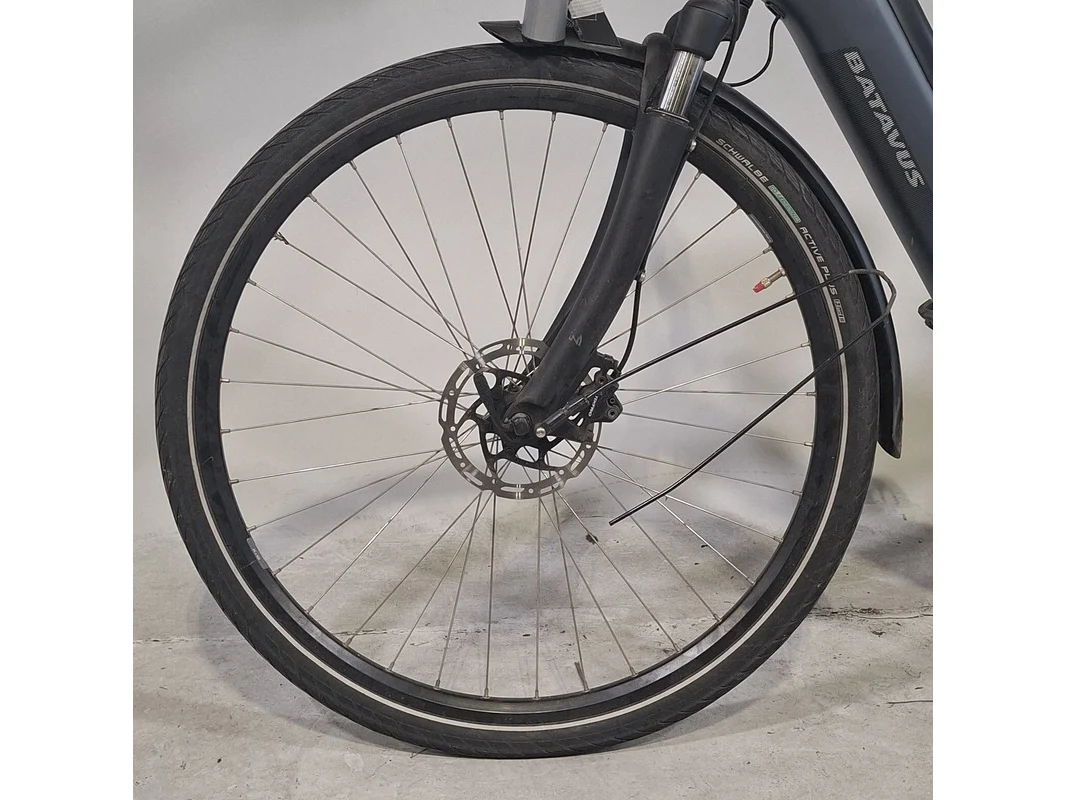 Merk: Batavus Product: Elektrische damesfiets Afmeting: Framemaat ca. 48 cm. Conditie: gebruikt Specificaties: 8 versnellingen Geveerde voorvork Geveerde zadelpen Inclusief accu, exclusief fietscomputer Accu staat op slot Fiets staat op slot Bosch Active Line Plus middenmotor Exclusief sleutels en acculader Voorspatbord beschadigd