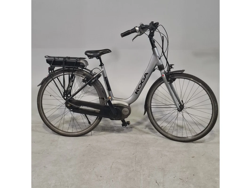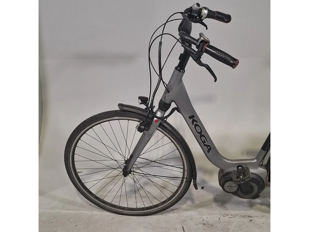 Merk: Koga Product: Elektrische damesfiets Afmeting: Framemaat ca. 50 cm. Conditie: gebruikt Specificaties: 8 versnellingen Geveerde voorvork Inclusief accu, exclusief fietscomputer Accu staat op slot Slot fiets doorgezaagd Afgelezen tellerstand: Onbekend Bosch Powerpack 400 accu Bosch Active Line middenmotor Exclusief sleutels en acculader Fiets staat niet op slot.