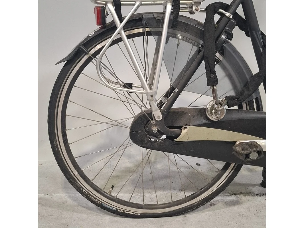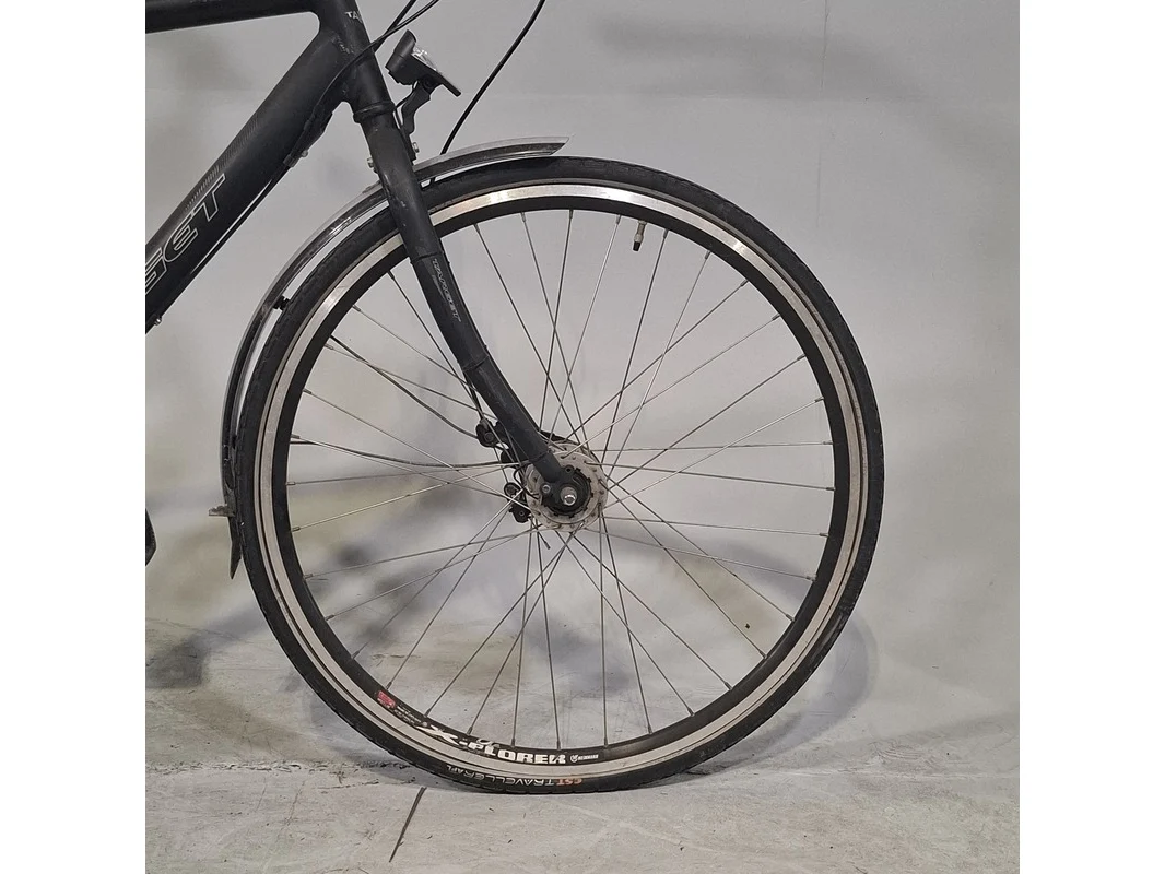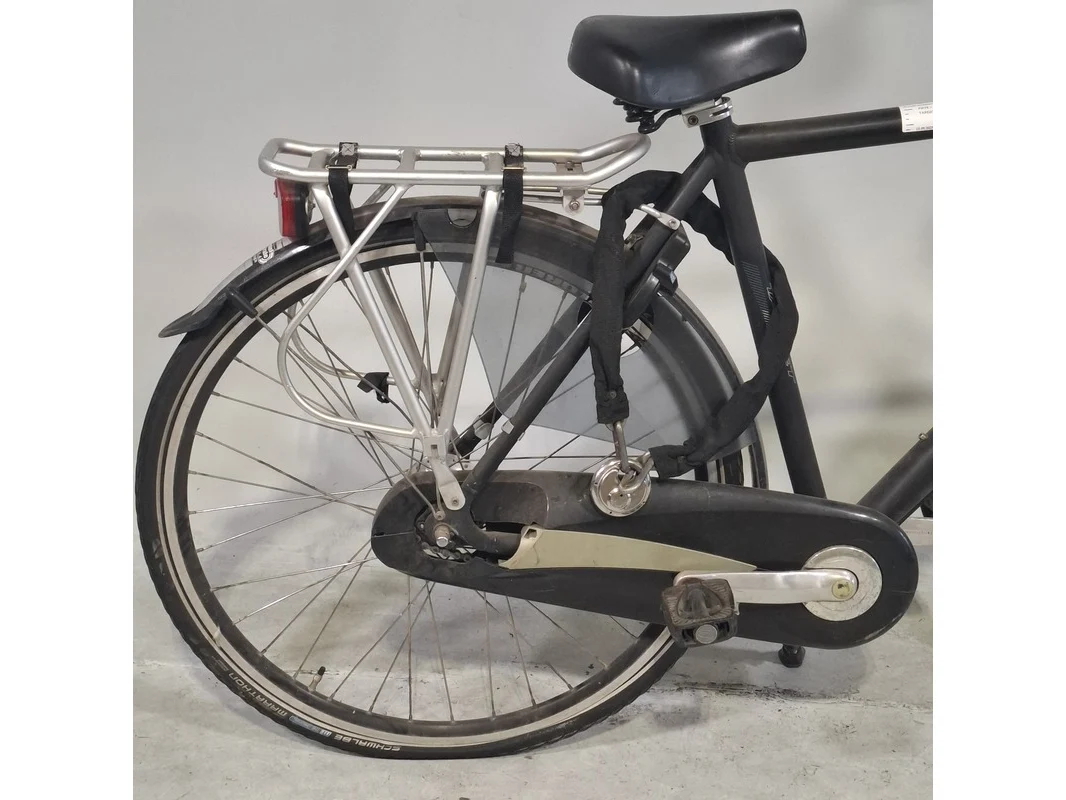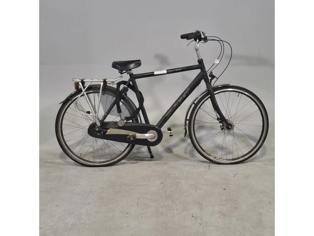 Merk: Target Product: Herenfiets Afmeting: Framemaat ca. 56 cm. Conditie: gebruikt Specificaties: 7 versnellingen Voorspatbord beschadigd Banden zacht
