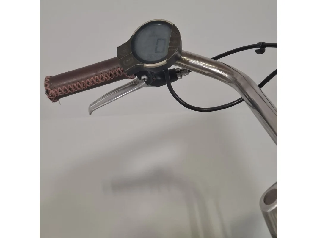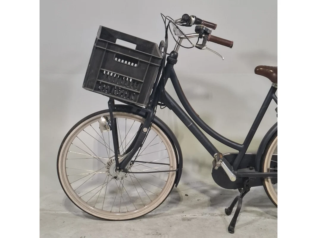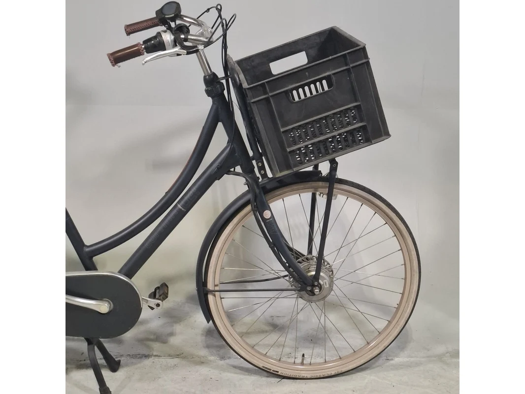 Merk: Cortina Product: Elektrische damesfiets Afmeting: Framemaat ca. 57 cm. Conditie: gebruikt Specificaties: 8 versnellingen Voorwielmotor Inclusief accu en fietscomputer Exclusief sleutels, accu en acculader Slot accu compartiment uitgeboord