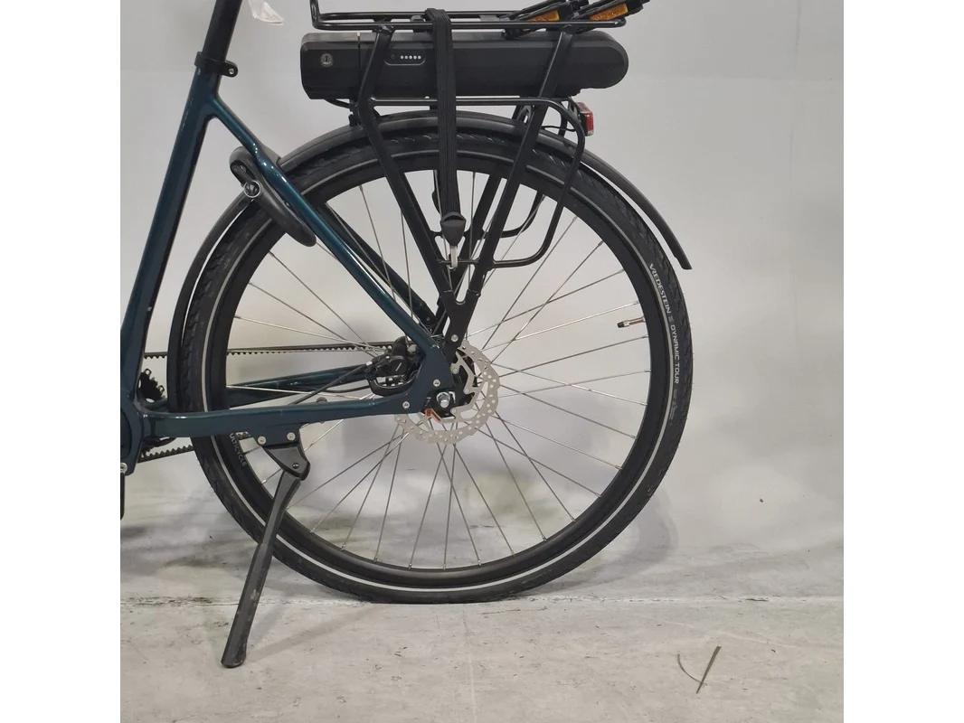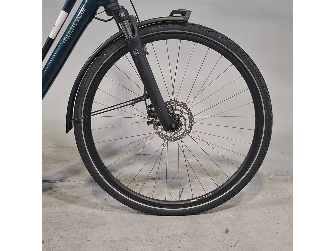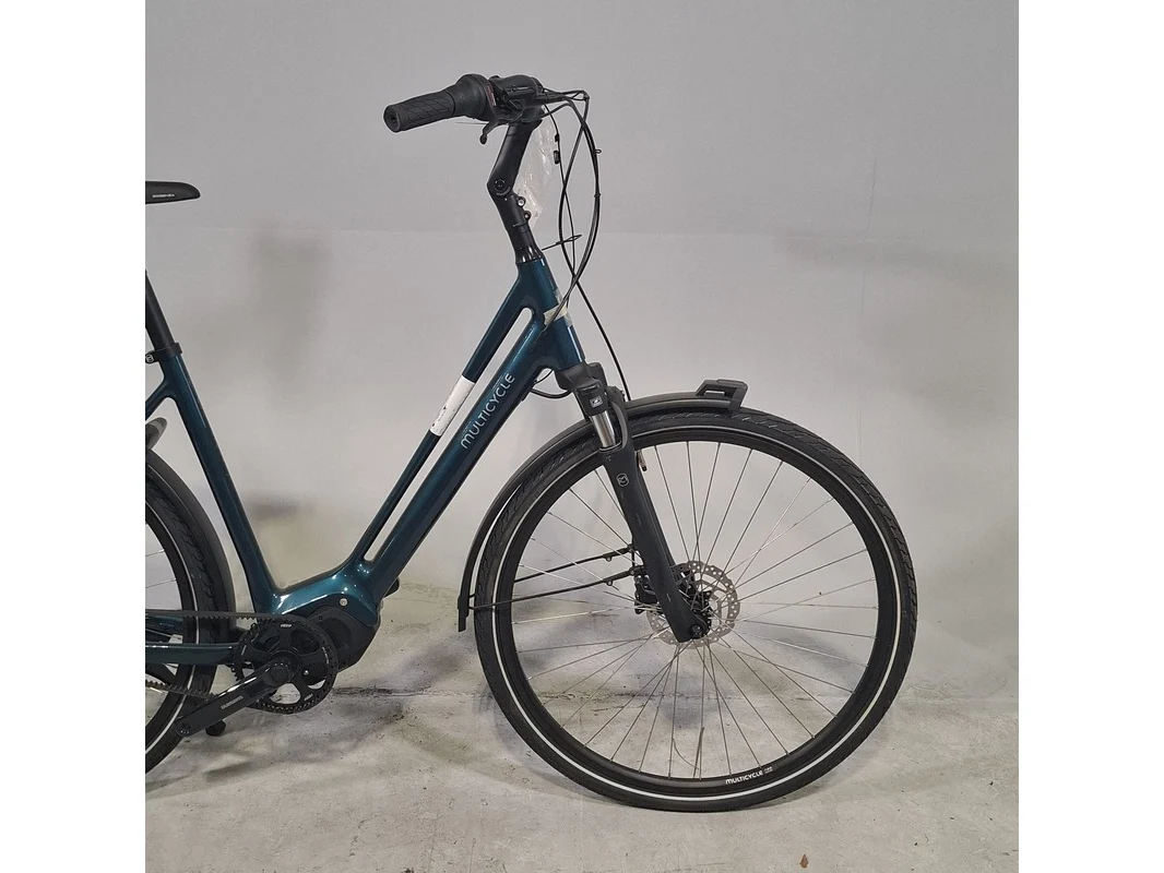 Merk: Multicycle Product: Elektrische damesfiets Afmeting: Framemaat ca. 54 cm. Conditie: gebruikt Specificaties: Schijfremmen voor en achter Geveerde voorvork Geveerde zadelpen 7 versnellingen Shimano middenmotor Riem aangedreven 1x sleutel aanwezig voor fietsslot en accu Inclusief accu, exclusief fietscomputer en lader