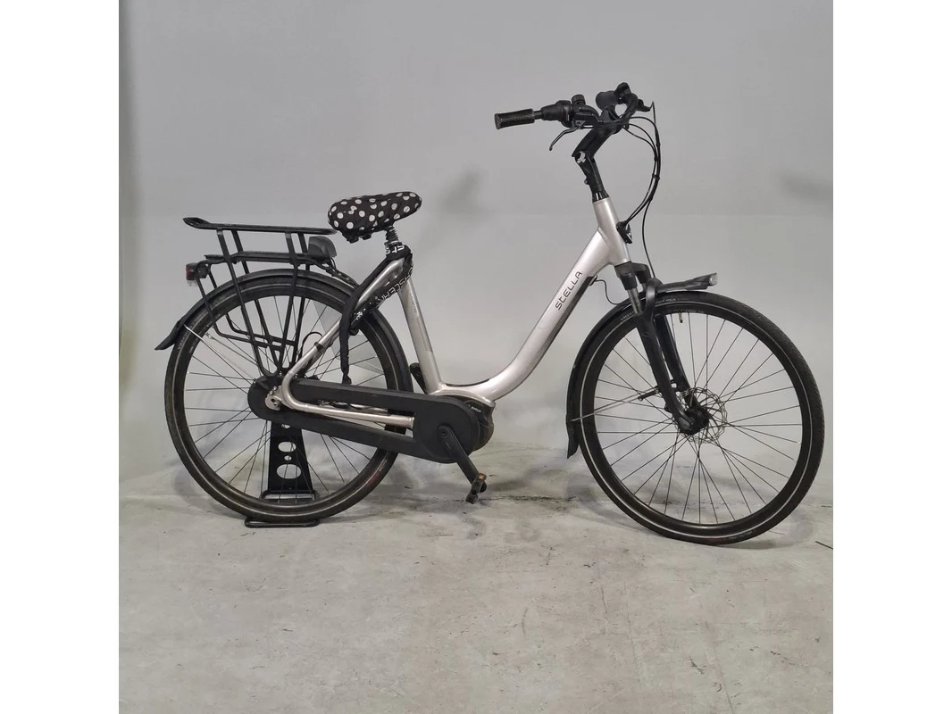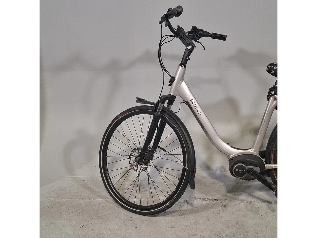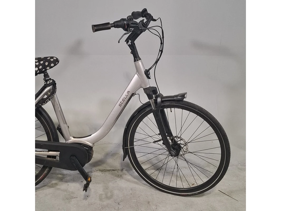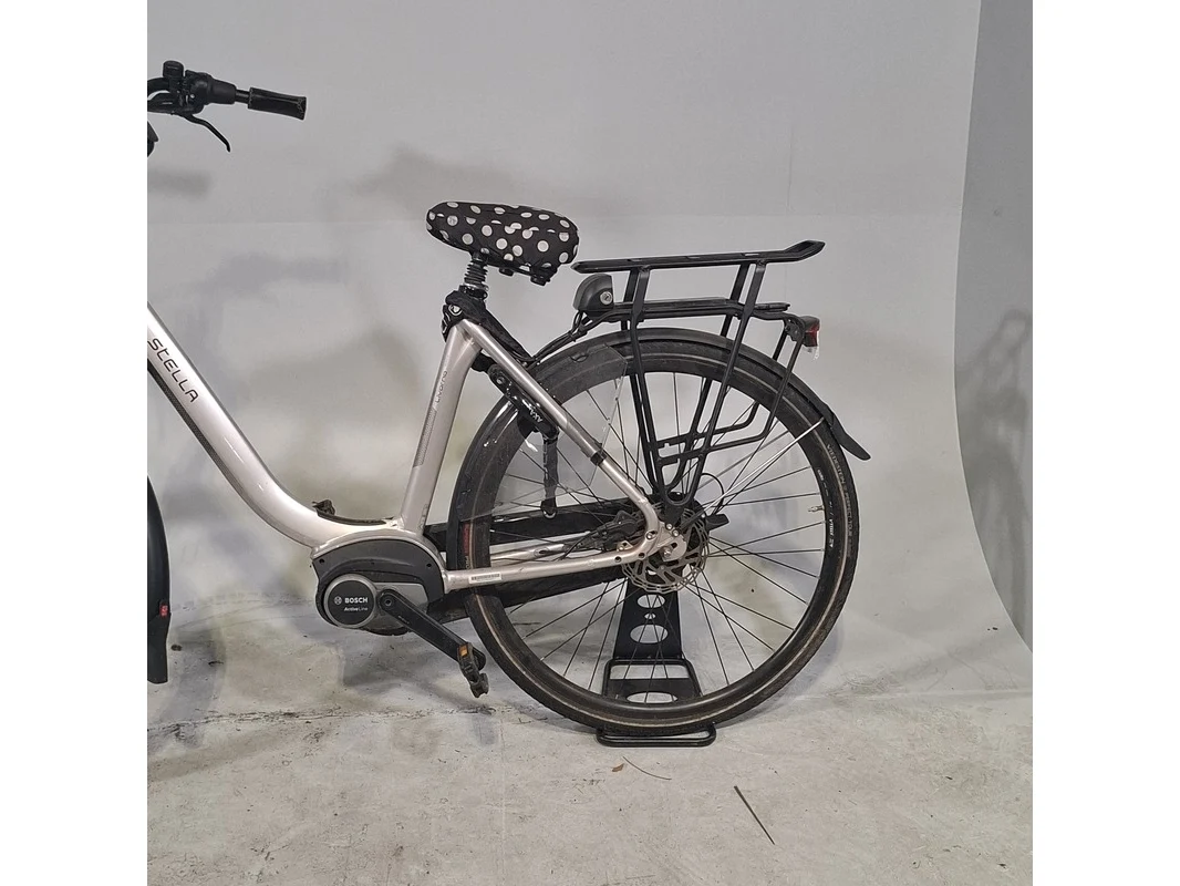 Merk: Stella Product: Elektrische damesfiets Afmeting: Framemaat ca. 54 cm. Conditie: gebruikt Specificaties: 7 versnellingen Geveerde voorvork Geveerde zadelpen Exclusief accu en fietscomputer Accu staat op slot Bosch Active Line middenmotor Exclusief sleutels en acculader