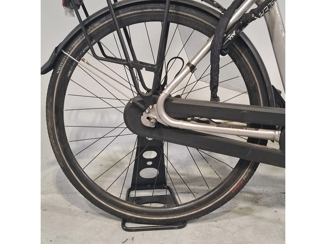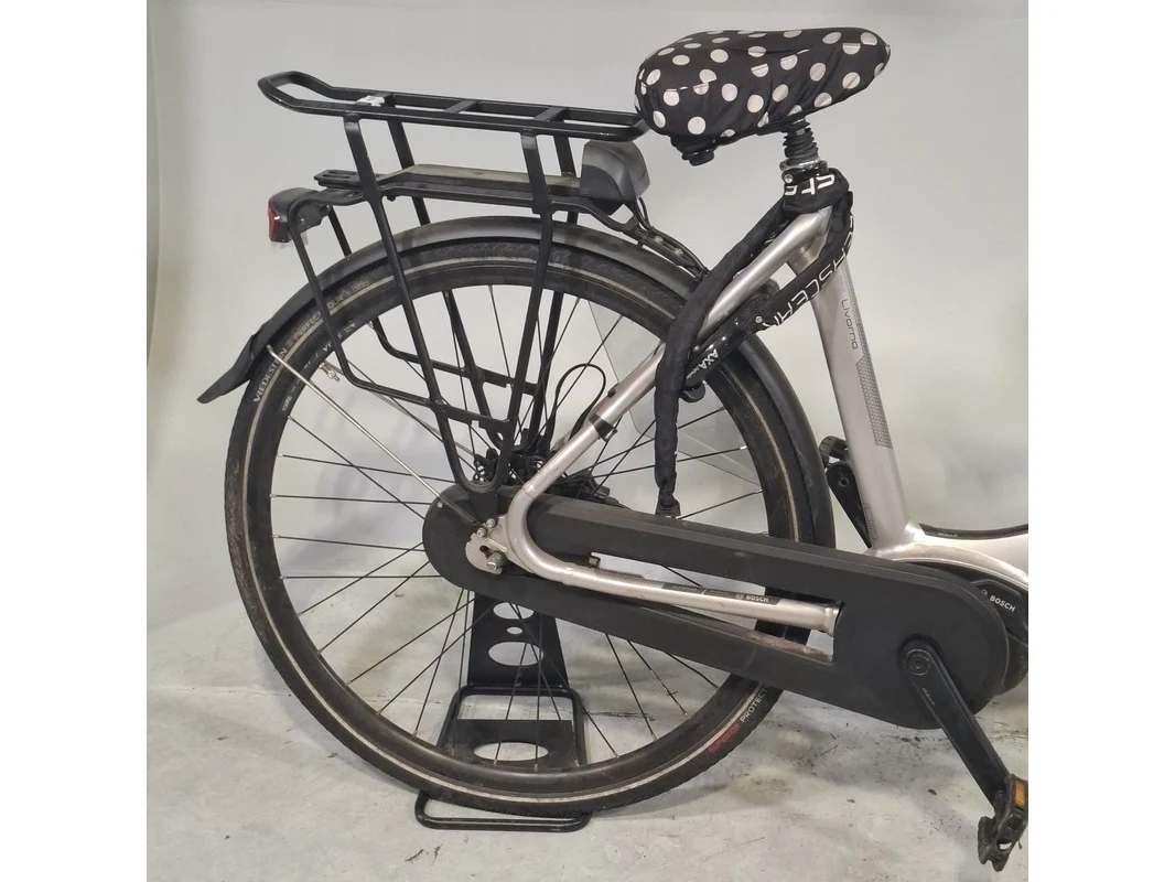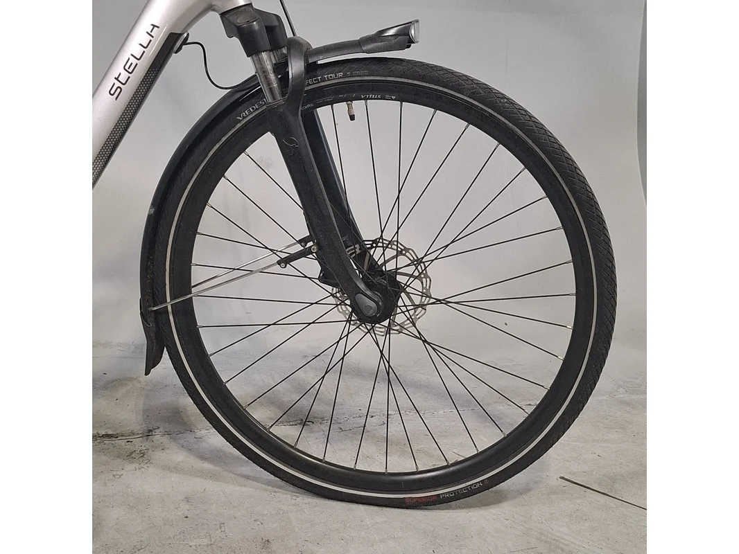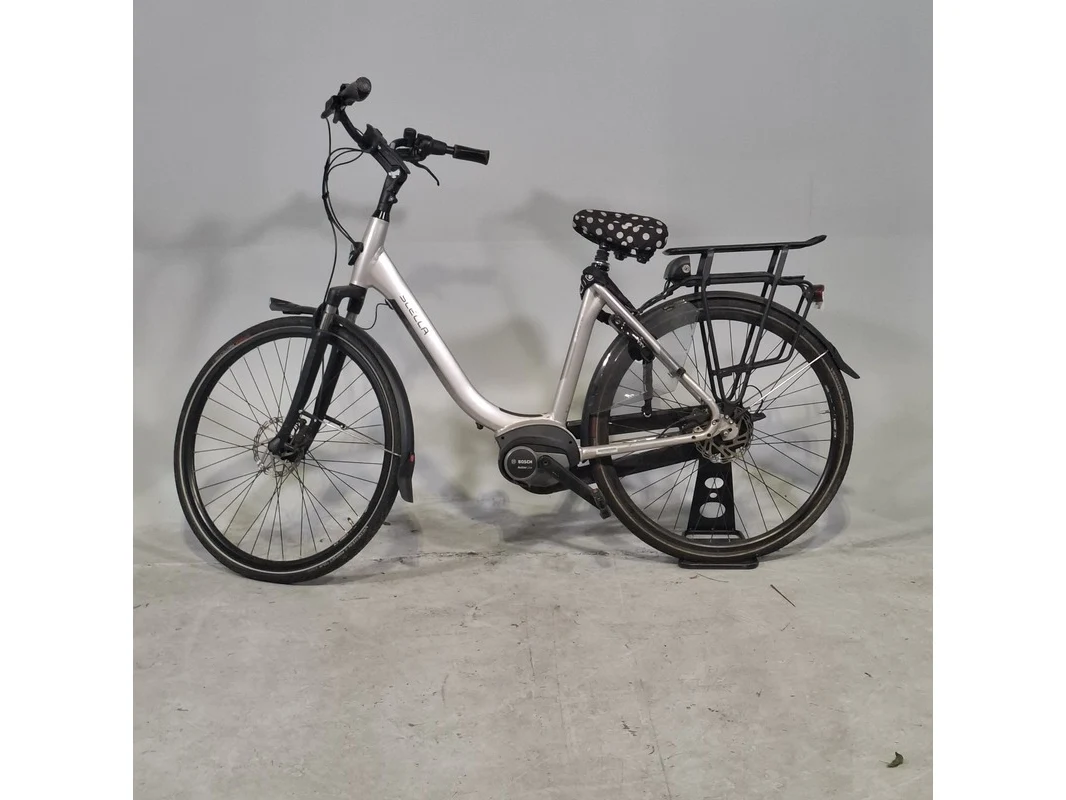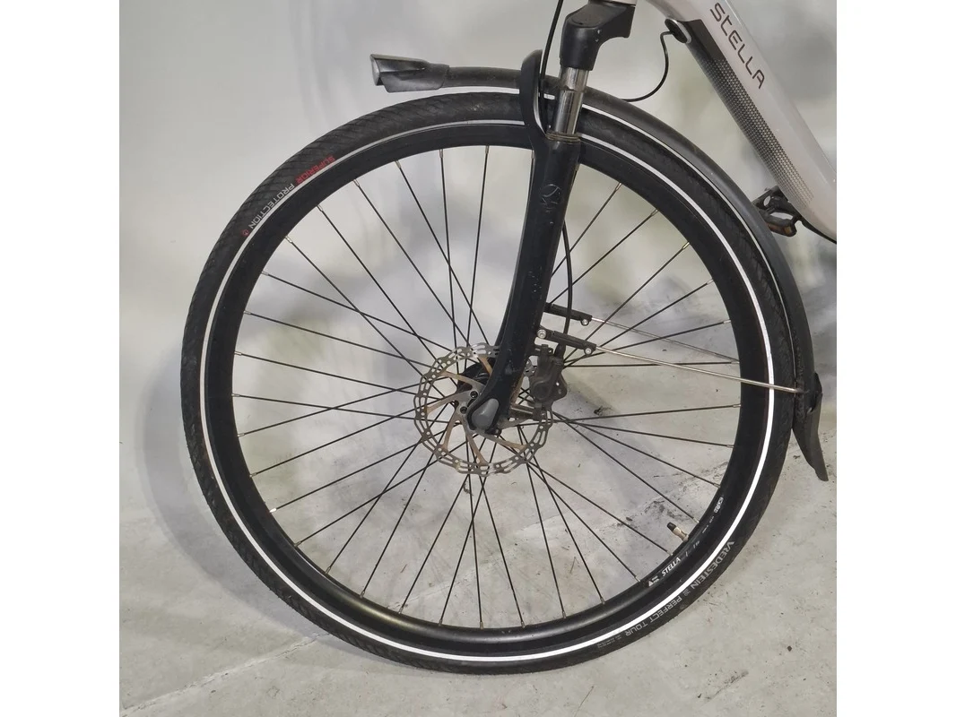 Merk: Stella Product: Elektrische damesfiets Afmeting: Framemaat ca. 54 cm. Conditie: gebruikt Specificaties: 7 versnellingen Geveerde voorvork Geveerde zadelpen Exclusief accu en fietscomputer Accu staat op slot Bosch Active Line middenmotor Exclusief sleutels en acculader