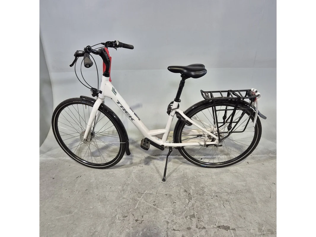 Merk: Trek Product: Damesfiets Afmeting: Framemaat ca.45 cm Conditie: gebruikt Specificaties: 7 Versnellingen Lichte beschadigingen rondom