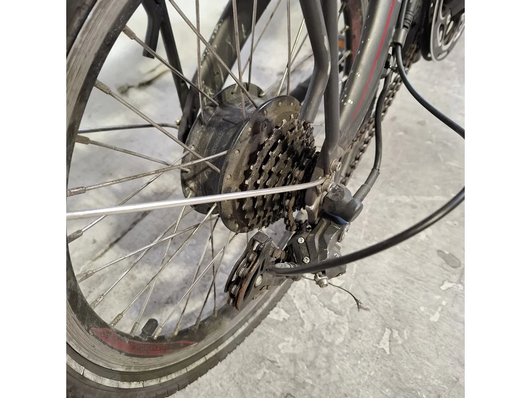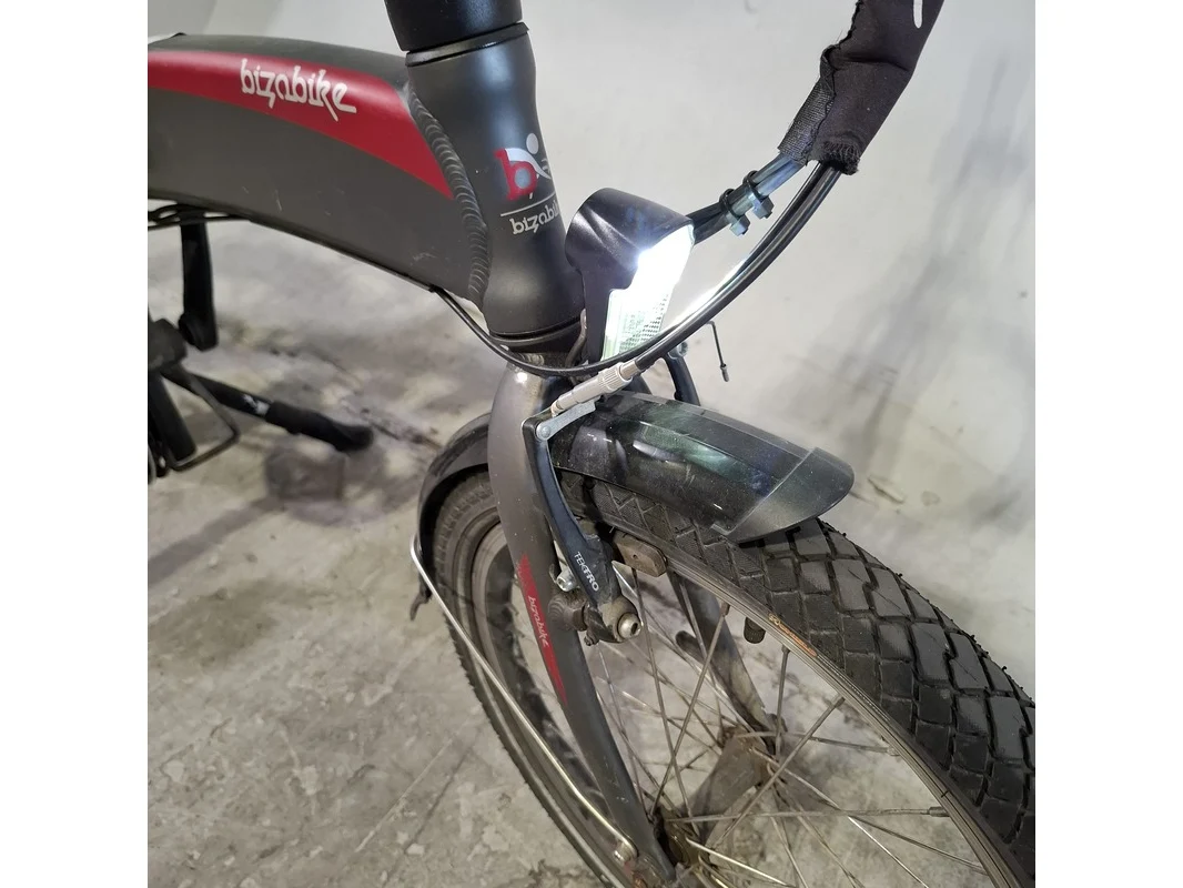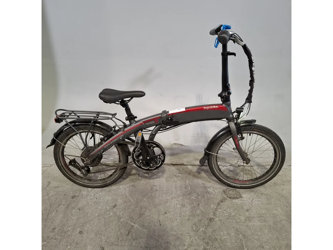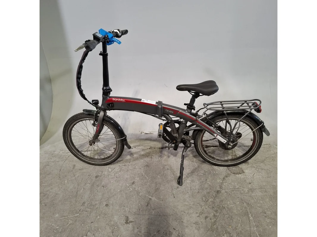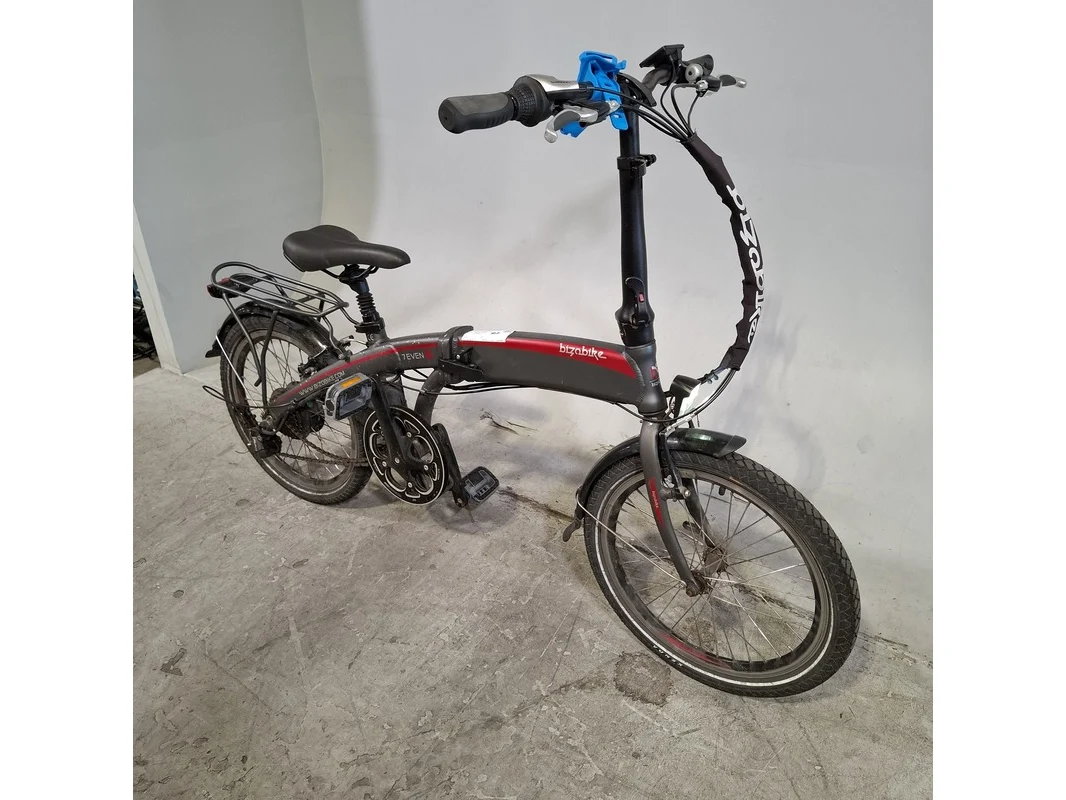 Merk: Bizobike Product: Elektrische vouwfiets Conditie: gebruikt Specificaties: 7 versnellingen Afgelezen tellerstand: 3771 Inclusief fietscomputer en accu Sleutel accu ontbreekt, slot beschadigd.
