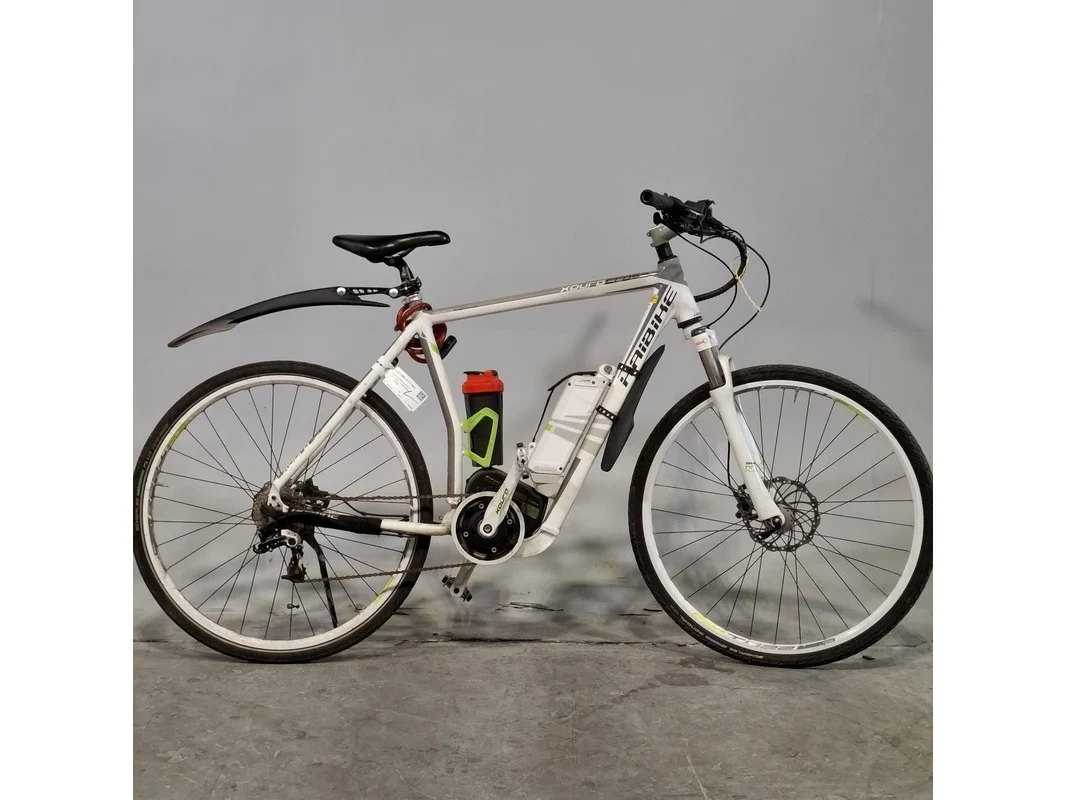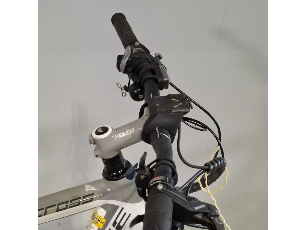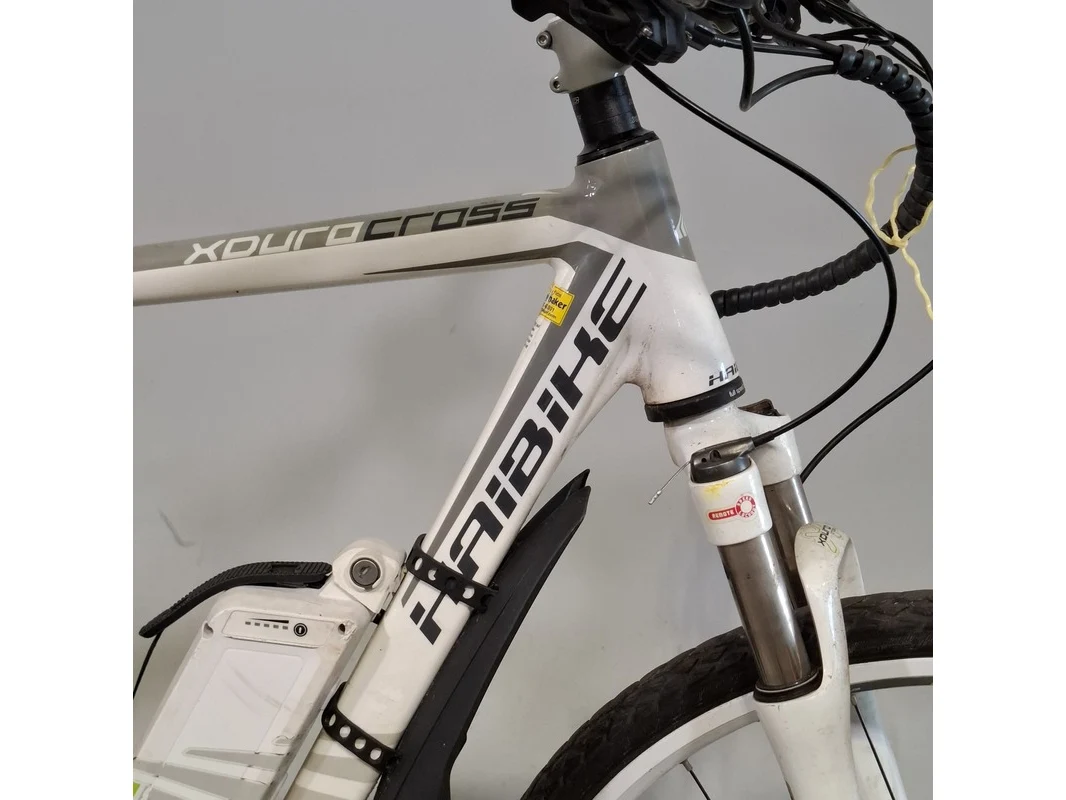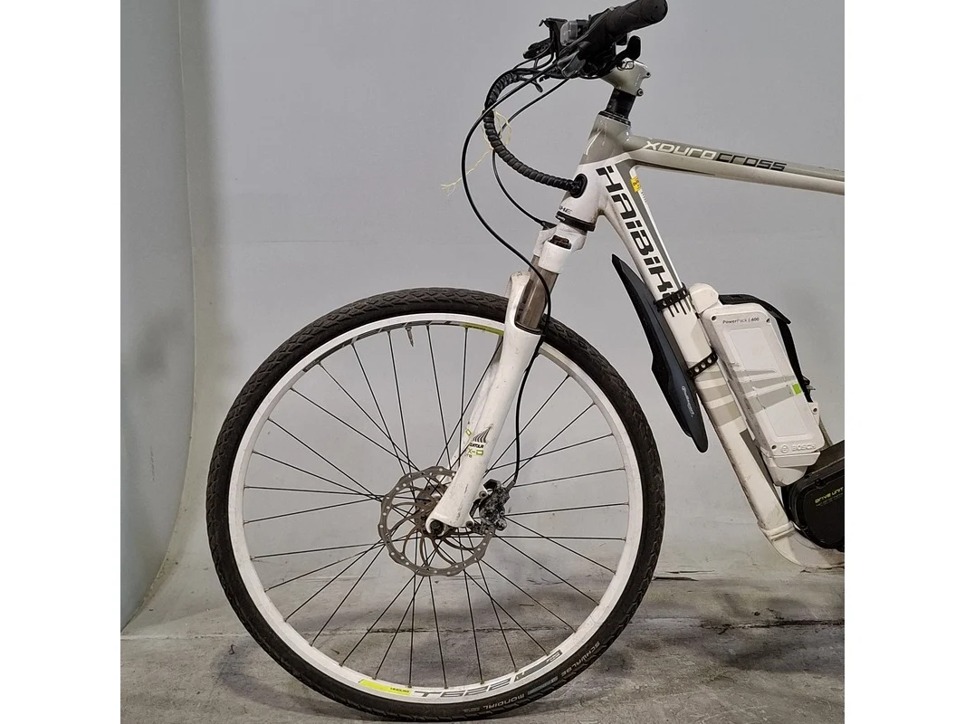 Merk: Haibike Product: Elektrische mountainbike Afmeting: Framemaat ca. 57 cm. Conditie: Gebruikt Specificaties: 10 versnellingen Geveerde voorvork Exclusief fietscomputer, inclusief accu Bosch Drive Unit middenmotor Exclusief acculader en sleutels Fiets staat niet op slot. Accu staat op slot