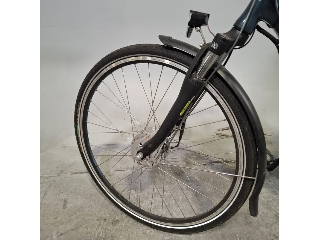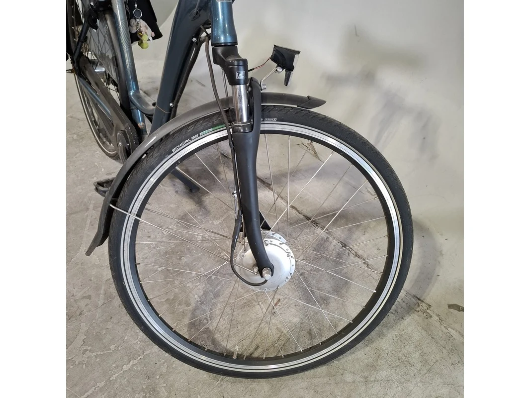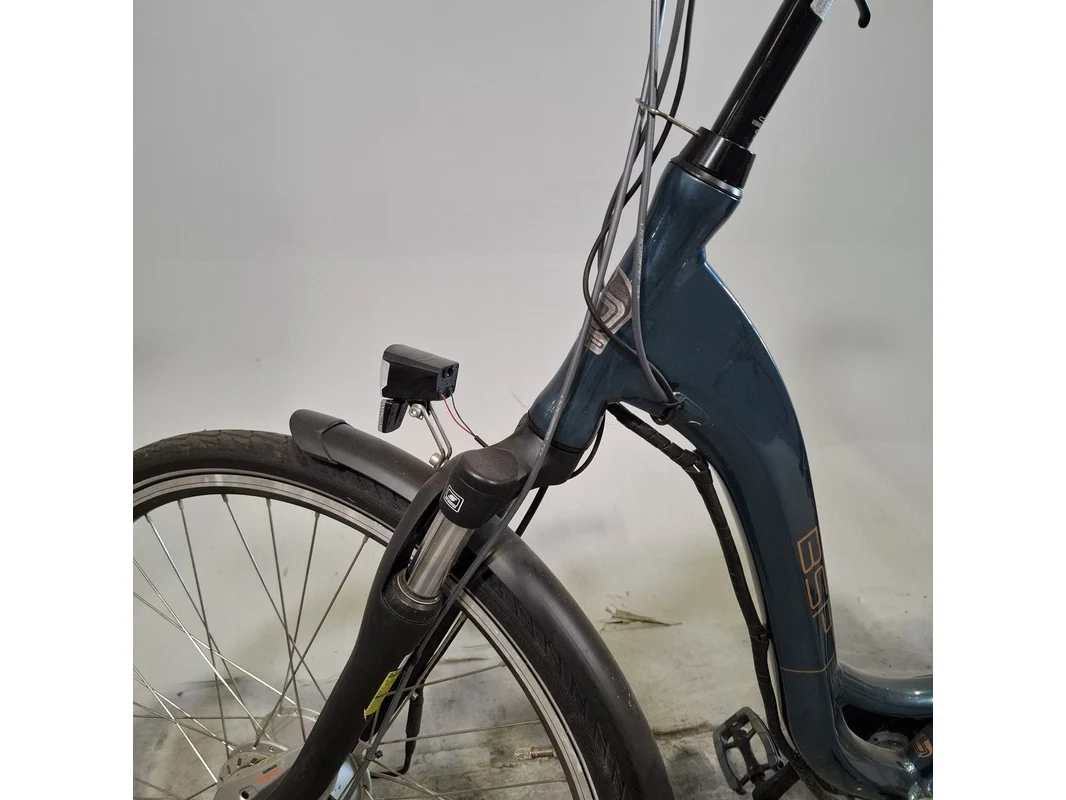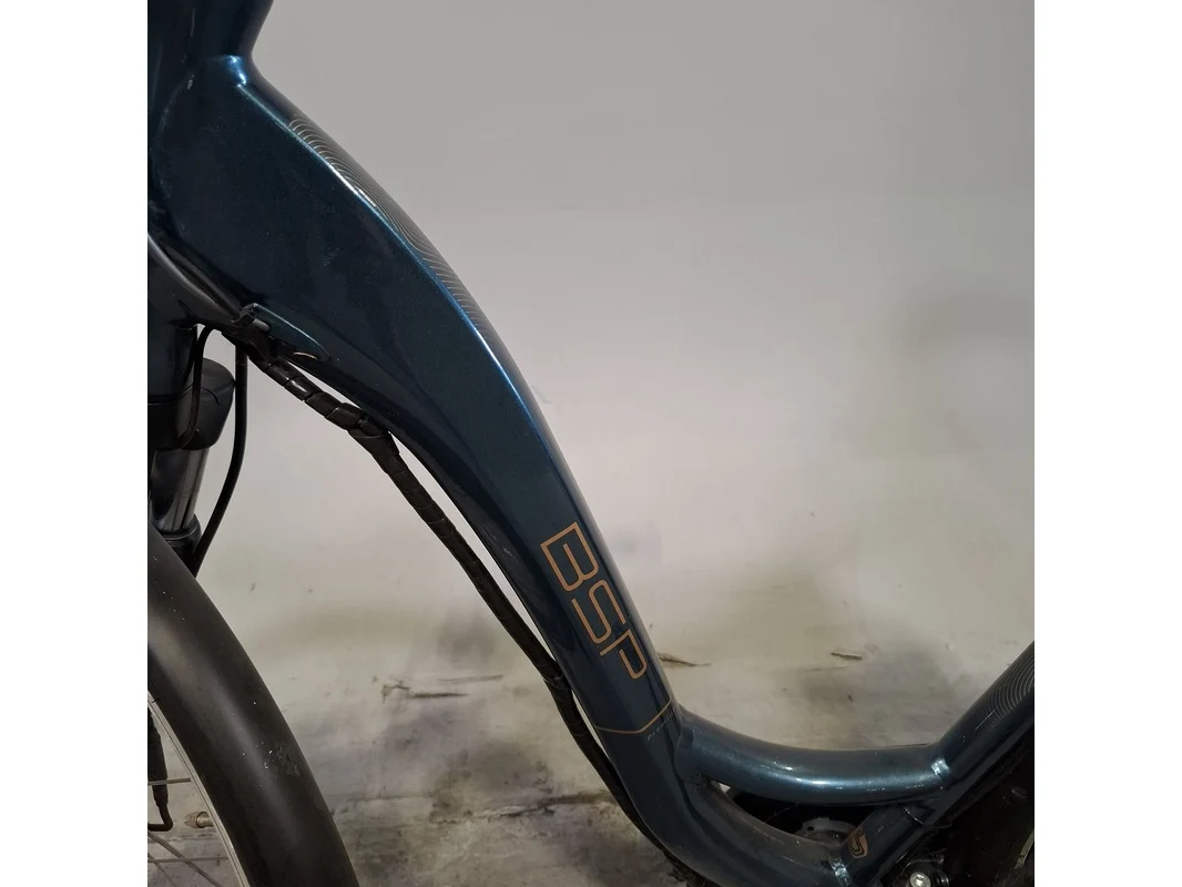 Merk: BSP Product: Elektrische damesfiets Afmeting: Framemaat ca. 54 cm. Conditie: Gebruikt Specificaties: 7 versnellingen Geveerde voorvork Geveerde zadelpen Inclusief accu en fietscomputer Accu staat op slot, exclusief sleutel Exclusief acculader, fiets gaat niet aan