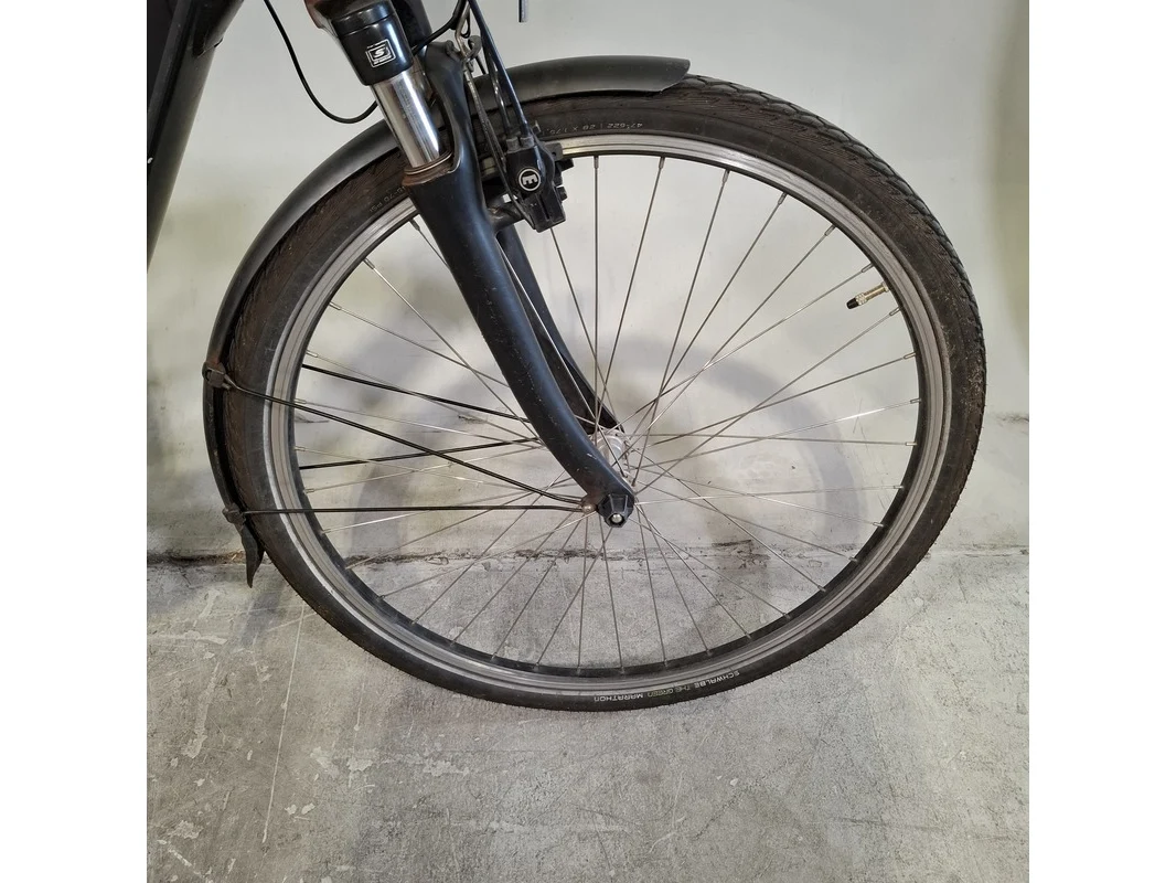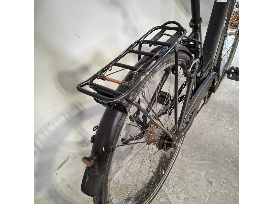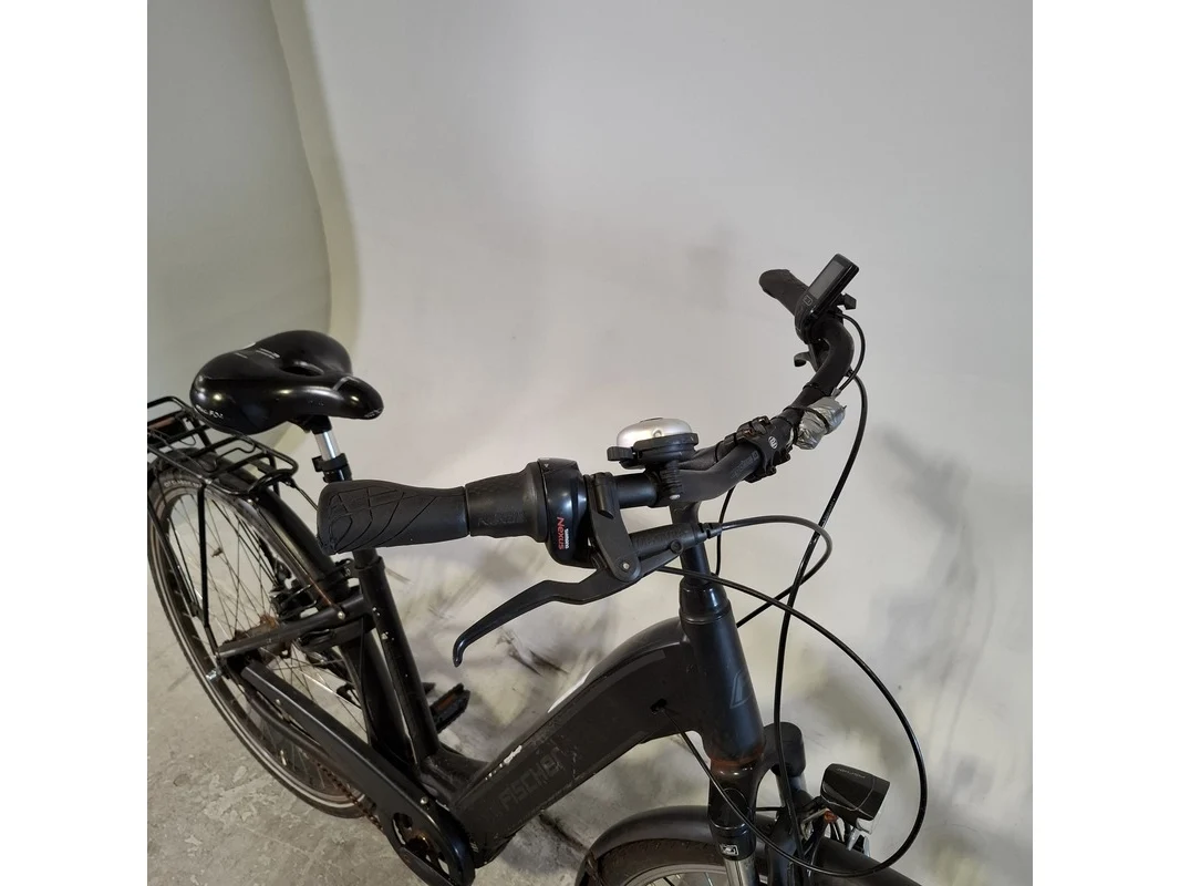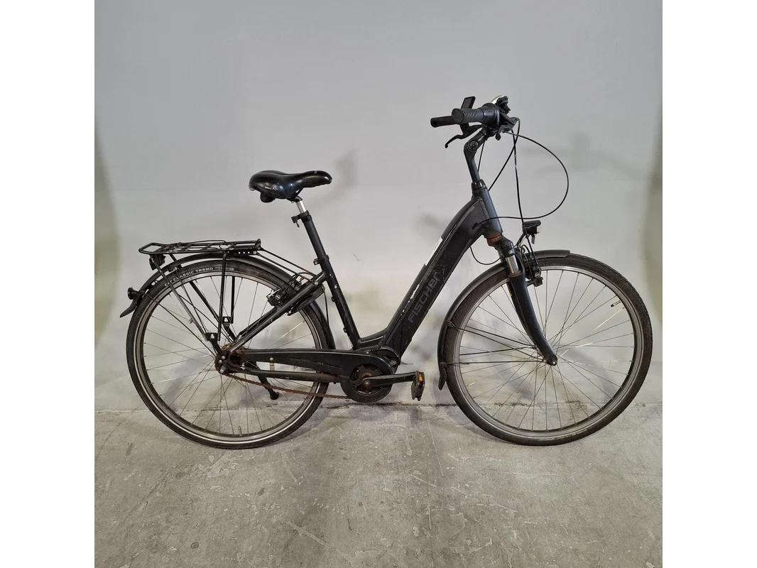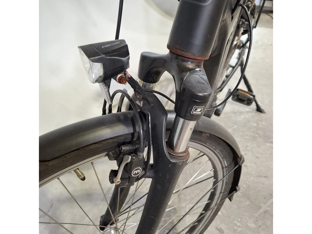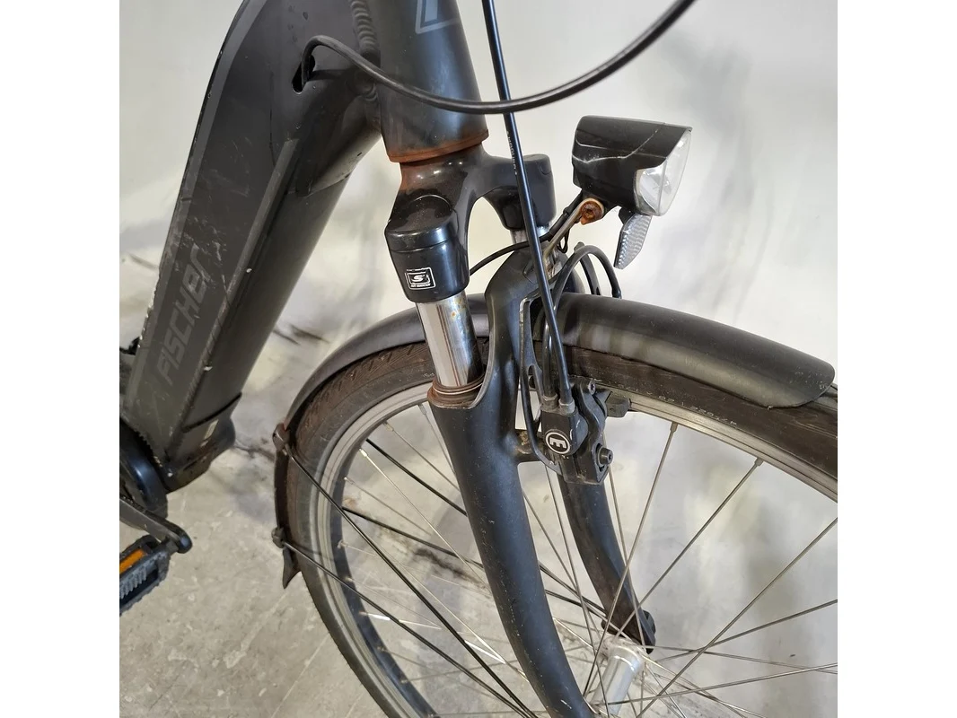 Merk: Fischer Product: Elektrische damesfiets Afmeting: Framemaat ca. 44 cm Conditie: gebruikt Specificaties: Geveerde voorvork 7 versnellingen Inclusief fietscomputer en accu. Bafang M200 middenmotor Accu is leeg. Exclusief acculader en sleutels. Accu staat op slot.