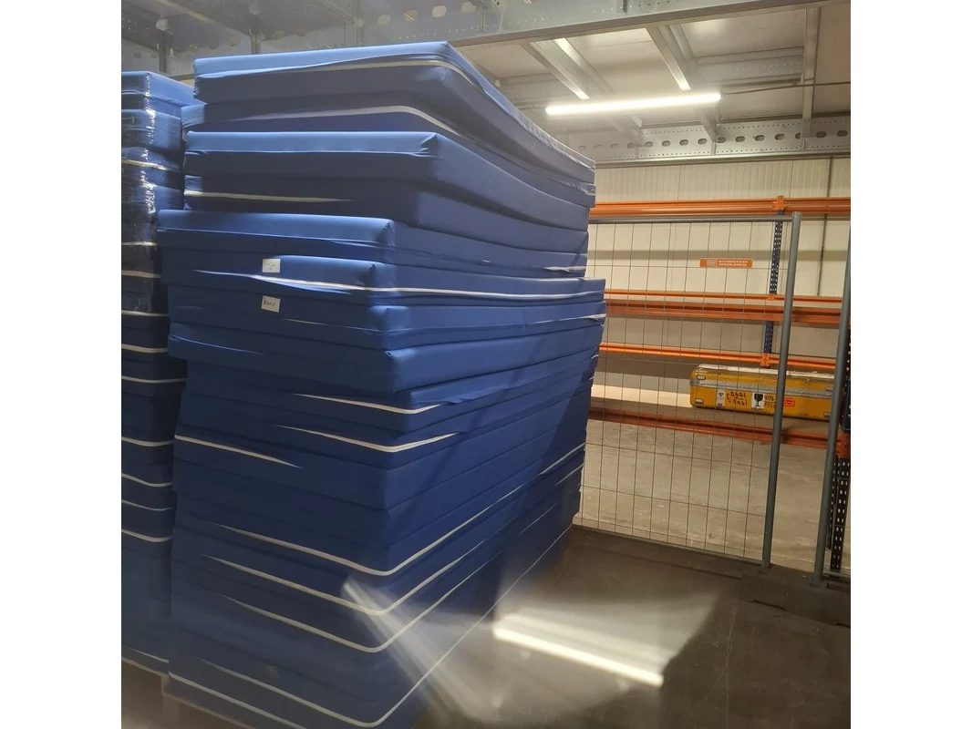Product: Matras Afmeting: LxB ca. 199x89 cm. Conditie: gebruikt Specificaties: Diverse soorten en maten Staat onbekend Exclusief pallet