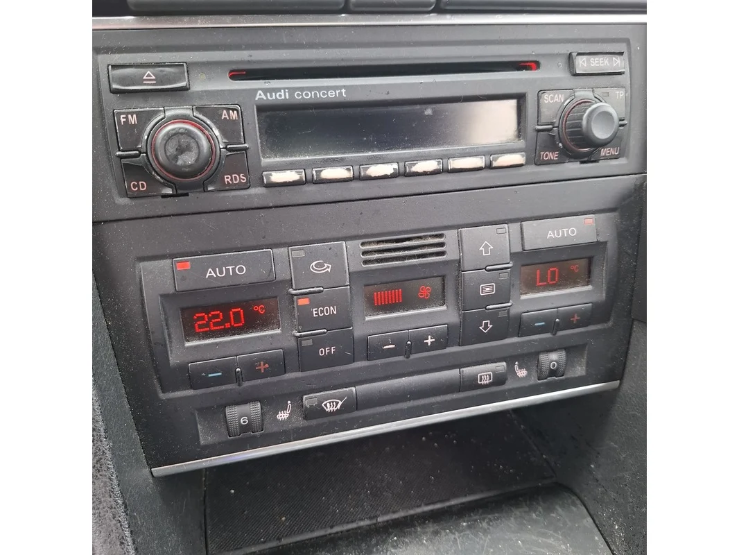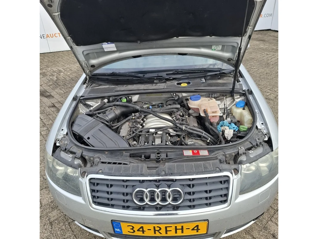 Merk: Audi Product: Personenauto Kleur: GRIJS BouwJaar: 2002 Conditie: Gebruikt Specificaties: Kenteken: 34-RFH-4 Geïmporteerd Eerste toelating nationaal: 13-05-2011 APK vervaldatum: 15-09-2025 Brandstof: Benzine/LPG Afgelezen tellerstand: 304722 Transmissie: Handgeschakeld 5 versnellingen Aantal sleutels: 1 VIN nummer: WAUZZZ8H83K012253 Start: Ja met booster Opties e.d. Lichtmetalen velgen Radio/CD speler Elektrisch bedienbare ramen Trekhaak Lederen bekleding Waargenomen gebreken Scheur in de bekleding