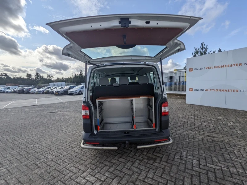 Merk: Volkswagen Product: Personenbus BouwJaar: 2017 Conditie: gebruikt Specificaties: Kenteken: Niet geregistreerd Eerste toelating internationaal: 2014-09-23 APK vervaldatum: Onbekend Brandstof: Diesel Afgelezen tellerstand: 129.197 Transmissie: automatisch Aantal sleutels: 2 VIN nummer: WV2ZZZ7HZFH159569 Start: ja Opties e.d. Airconditioning Cruise Control Elektrische ramen en spiegels Parkeersensoren Navigatiesysteem Start/stop systeem Trekhaak Waargenomen gebreken Radio/Media systeem ontbreekt Gebruikerssporen Krasjes in rechter portier en bij rechter voorwiel Logo voorzijde ontbreekt DOM 51 van toepassing. In de laadruimte is een aangepast interieur, bestaande uit 3-persoons bank, 2 klapstoelen, zitblok en klaptafel, gemonteerd. Deze inrichting wijkt af van het bijgevoegde CvO. Het voertuig is voorzien van blauwe wrapfolie. Blauwe wrapfolie en afgeknipte bedrading / dichtgemaakte gaten op het dak.