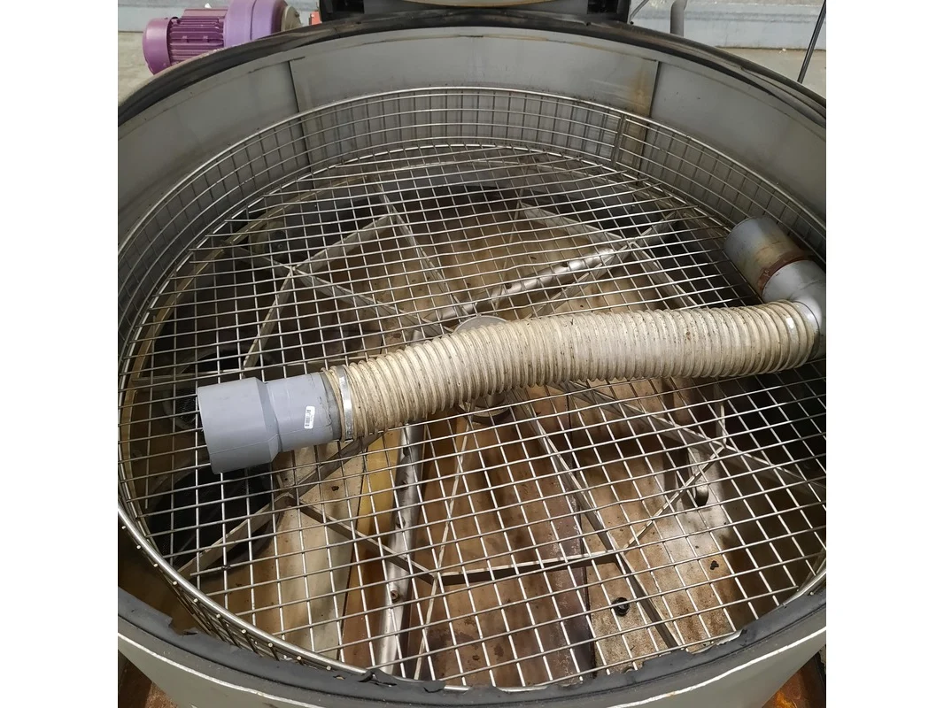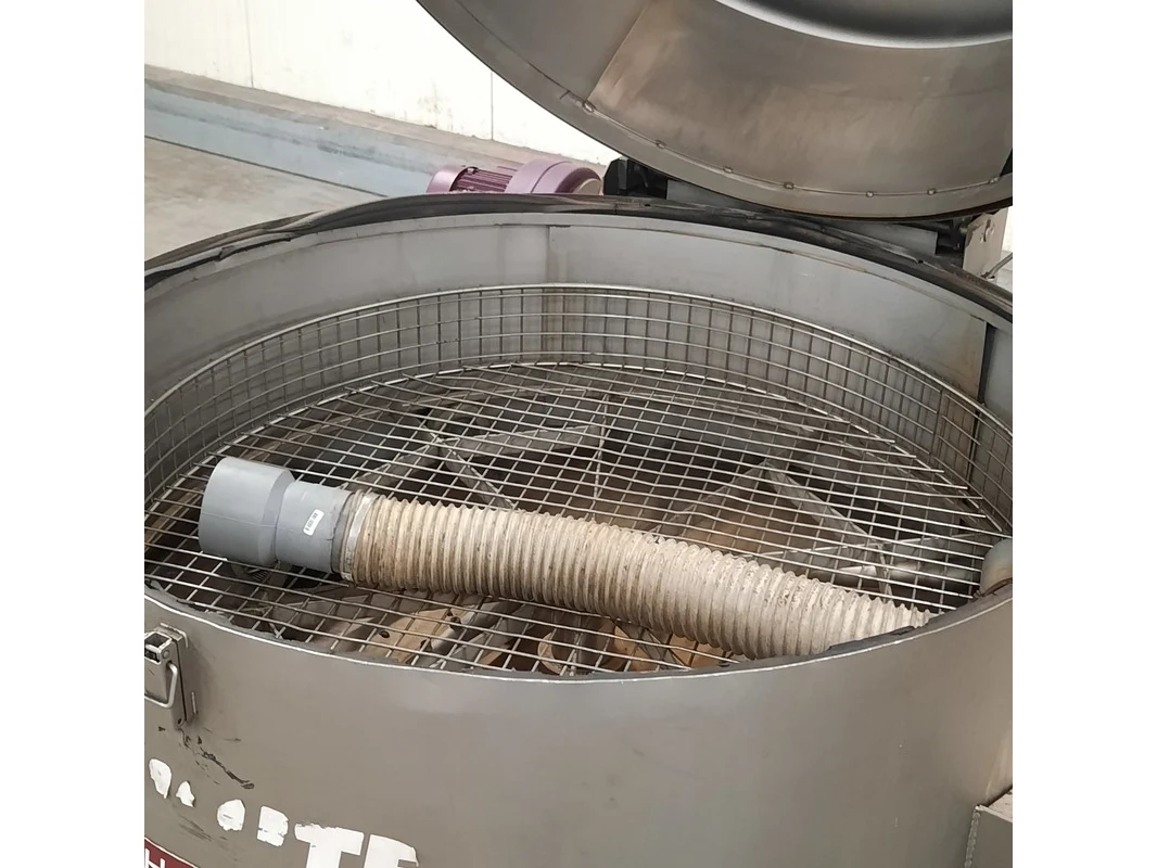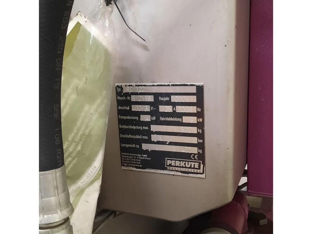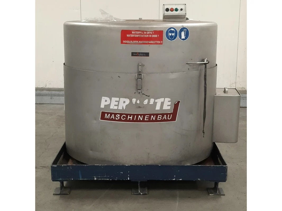 Merk: Perkute Product: Reinigingsmachine Afmeting: Diameter ca. 128 cm. BouwJaar: 2009 Conditie: gebruikt Specificaties: 400V 25A 4 kW Gewicht ca. 500 Kg. Technische staat en compleetheid onbekend.